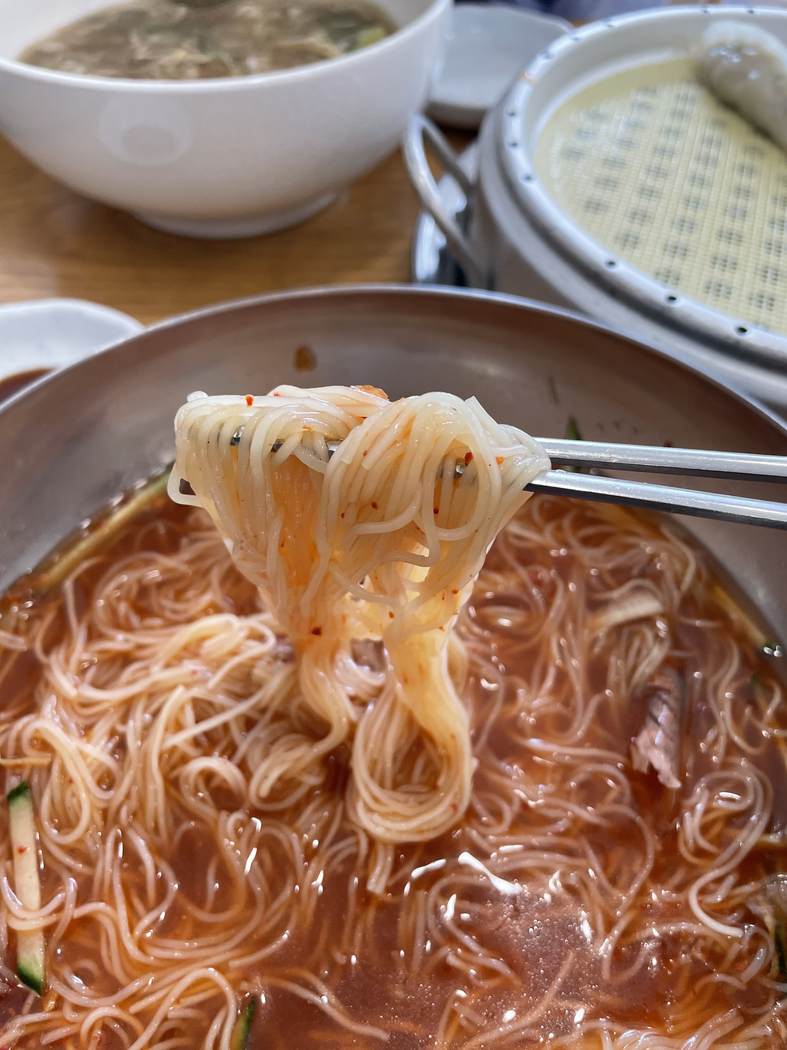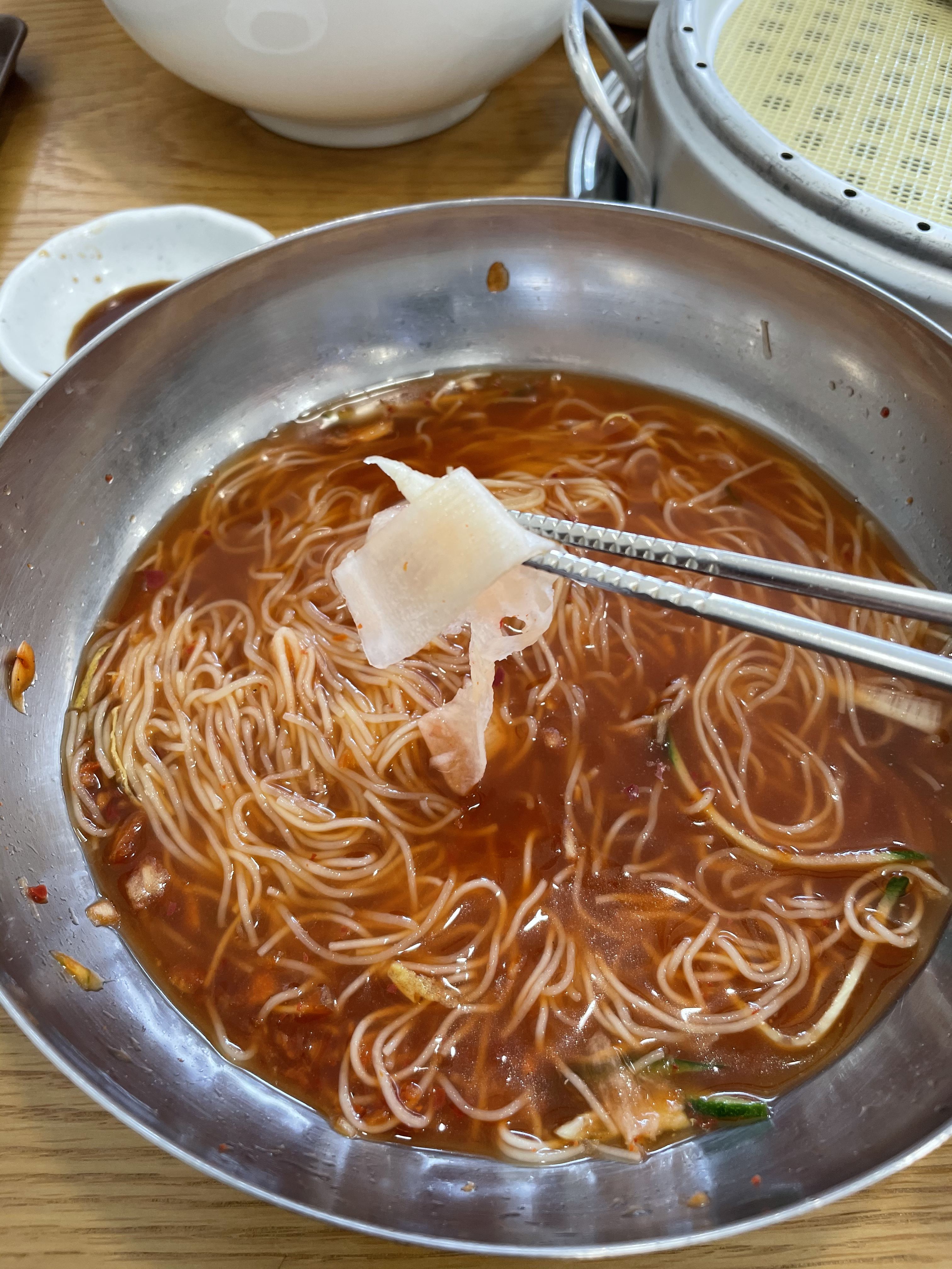 닭곰탕과 밀면 그리고 만두까지 깨끗이 클리어했어요. 부산에서 먹던 밀면의 맛을 서울에서 느낄 수 있어서 정말 좋았습니다.