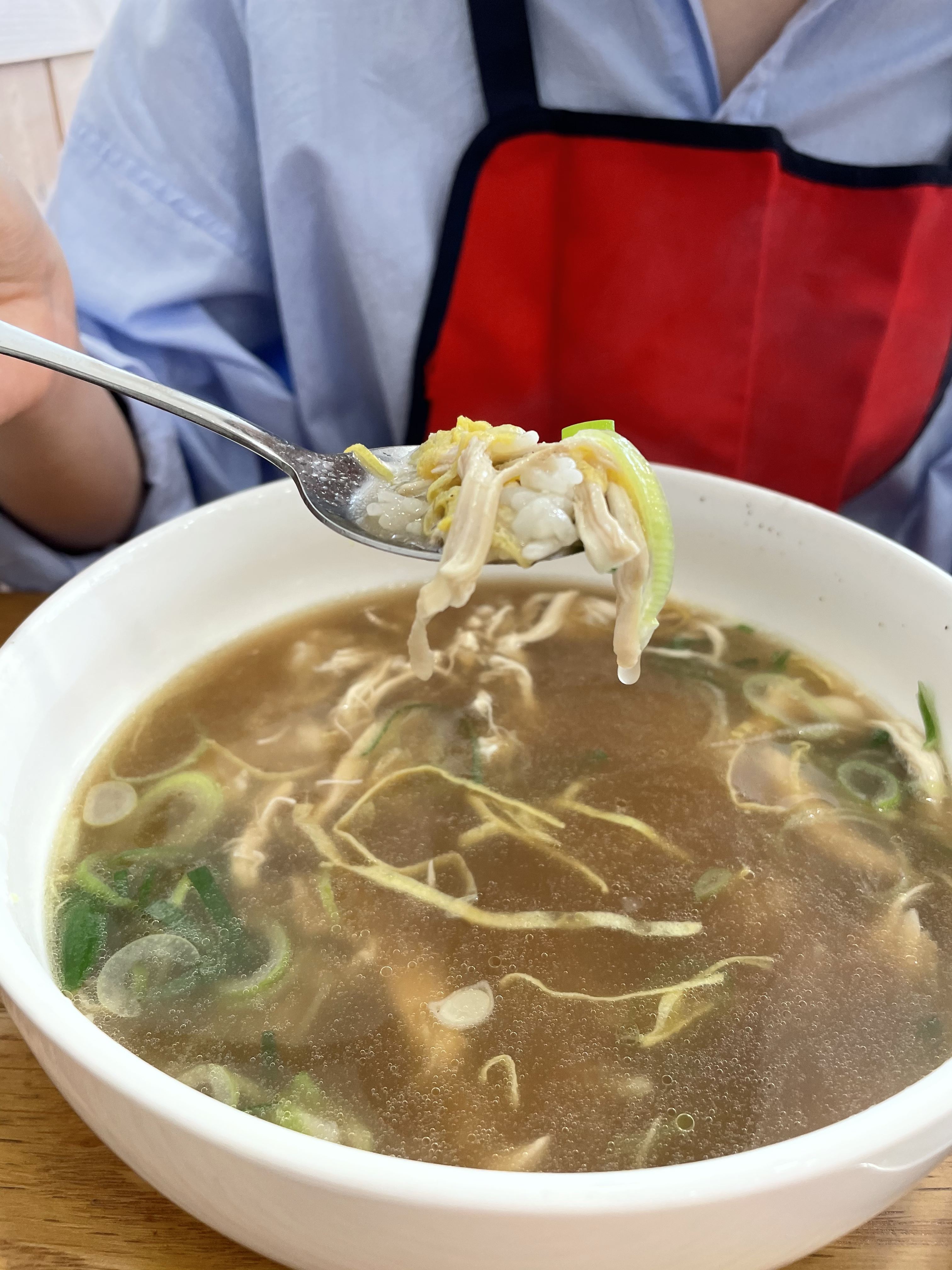 그리고 여자친구가 주문한 닭곰탕이 나왔는데요, 시원한 국물에 밥과 닭고기 그리고 각종 채소가 들어가 있어요. 전날 술을 먹고 속풀이 하기에 좋은 음식이었습니다.
