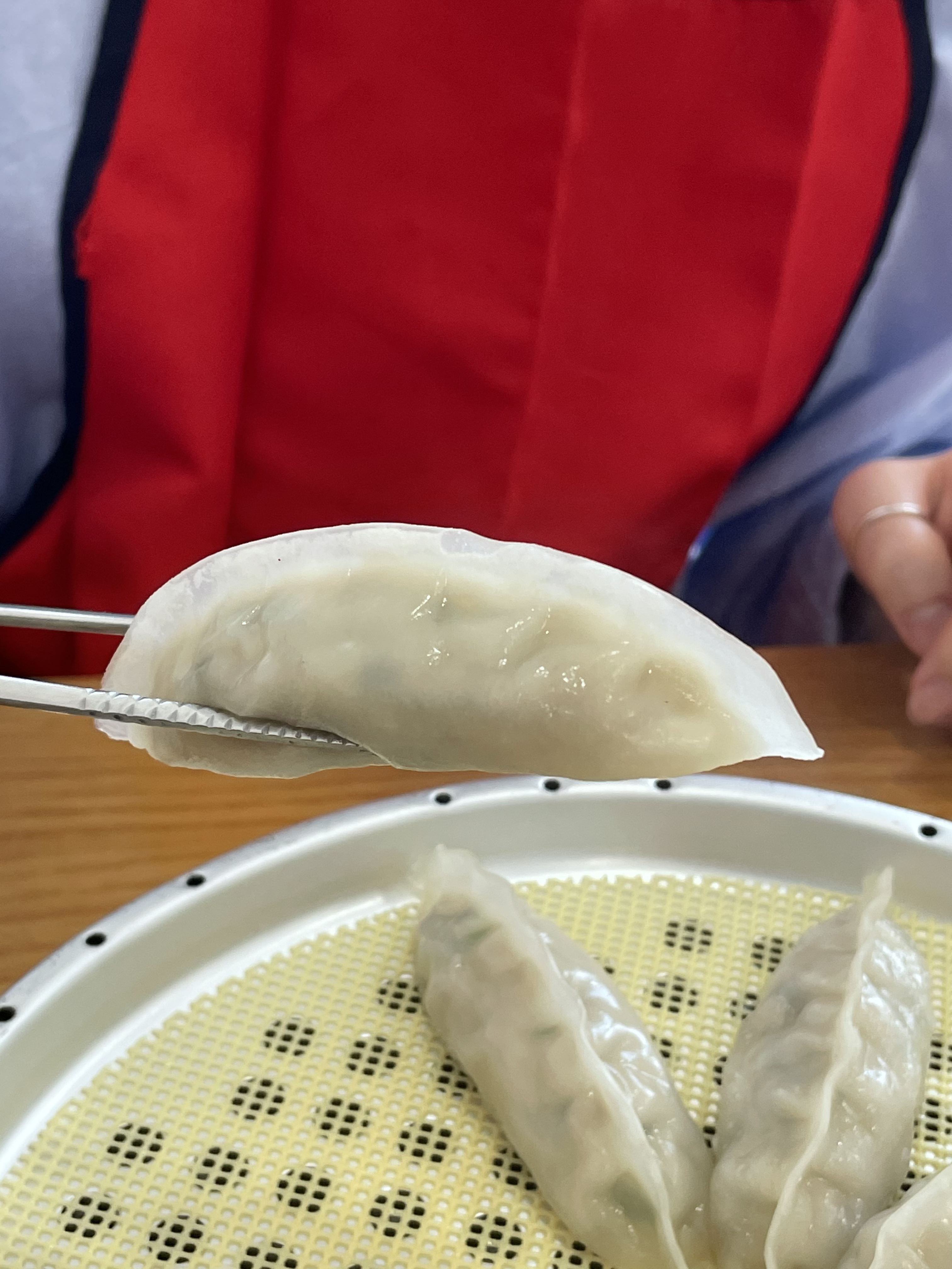 메인 음식이 나오기 전에 먼저 만두가 나왔는데요, 총 8조각으로 고기 만두소가 들어가 있어요. 밀면이 나오기 전에 애피타이저로 2~3개 정도 먹었어요. 나중에 시원한 밀면과 함께 먹어도 굉장히 맛있었습니다.