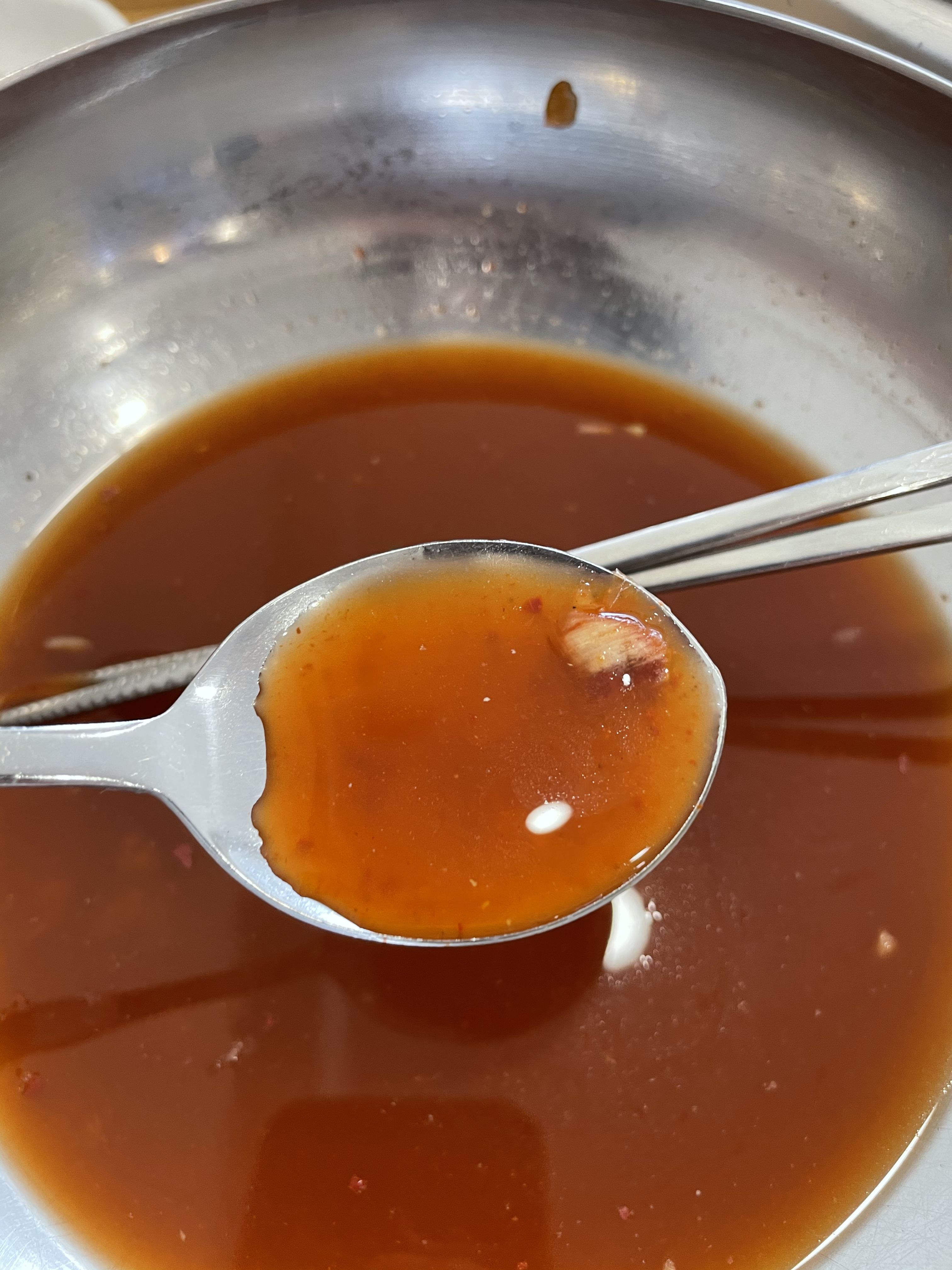 주문을 하고 기다리면 육수와 밑반찬들이 나와요. 역시 밀면을 먹기 전에 이 육수를 빼놓을 수는 없죠.