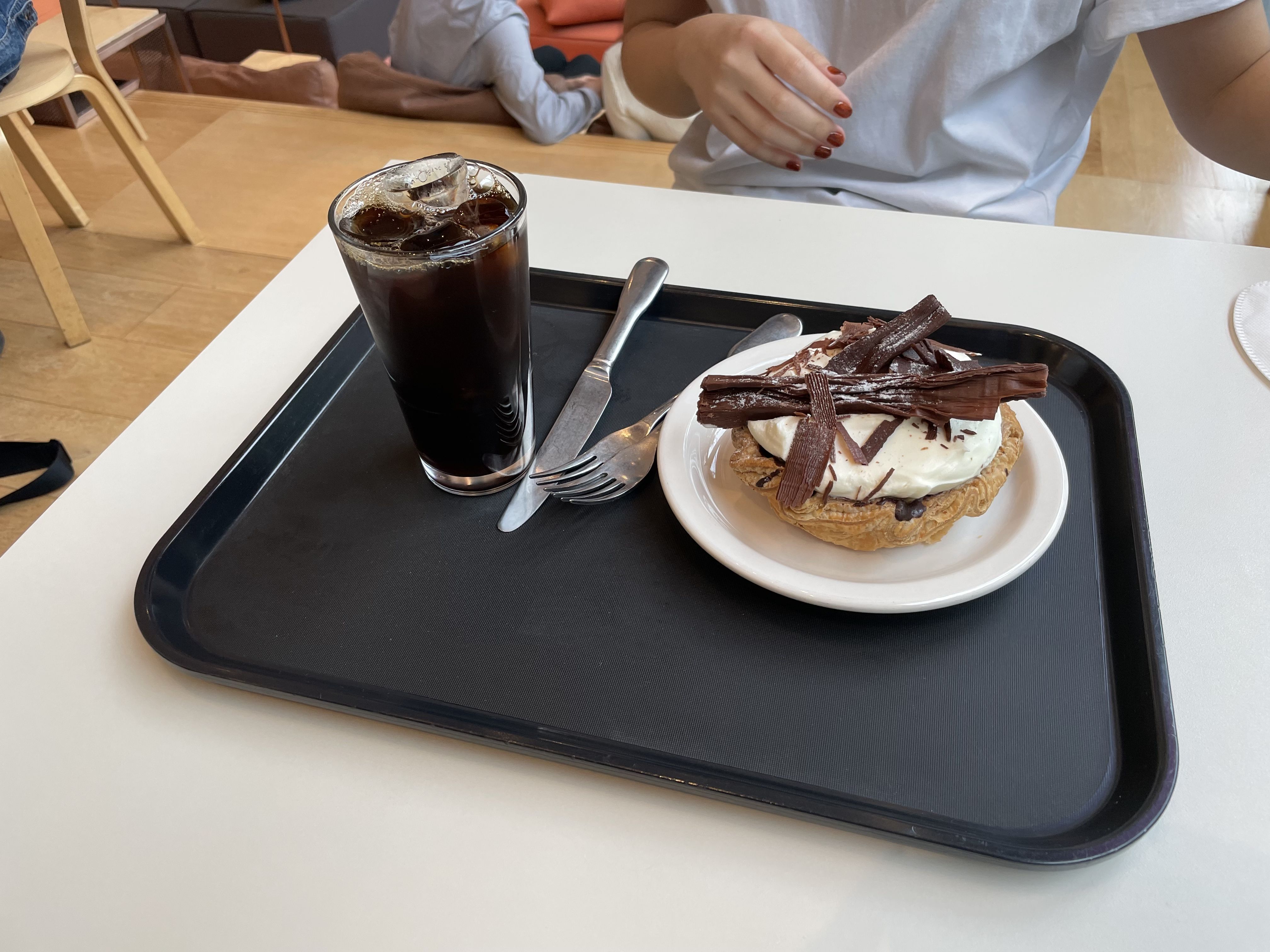 바나나 크림 타르트와 콜드 브루 한 잔을 주문했어요.
