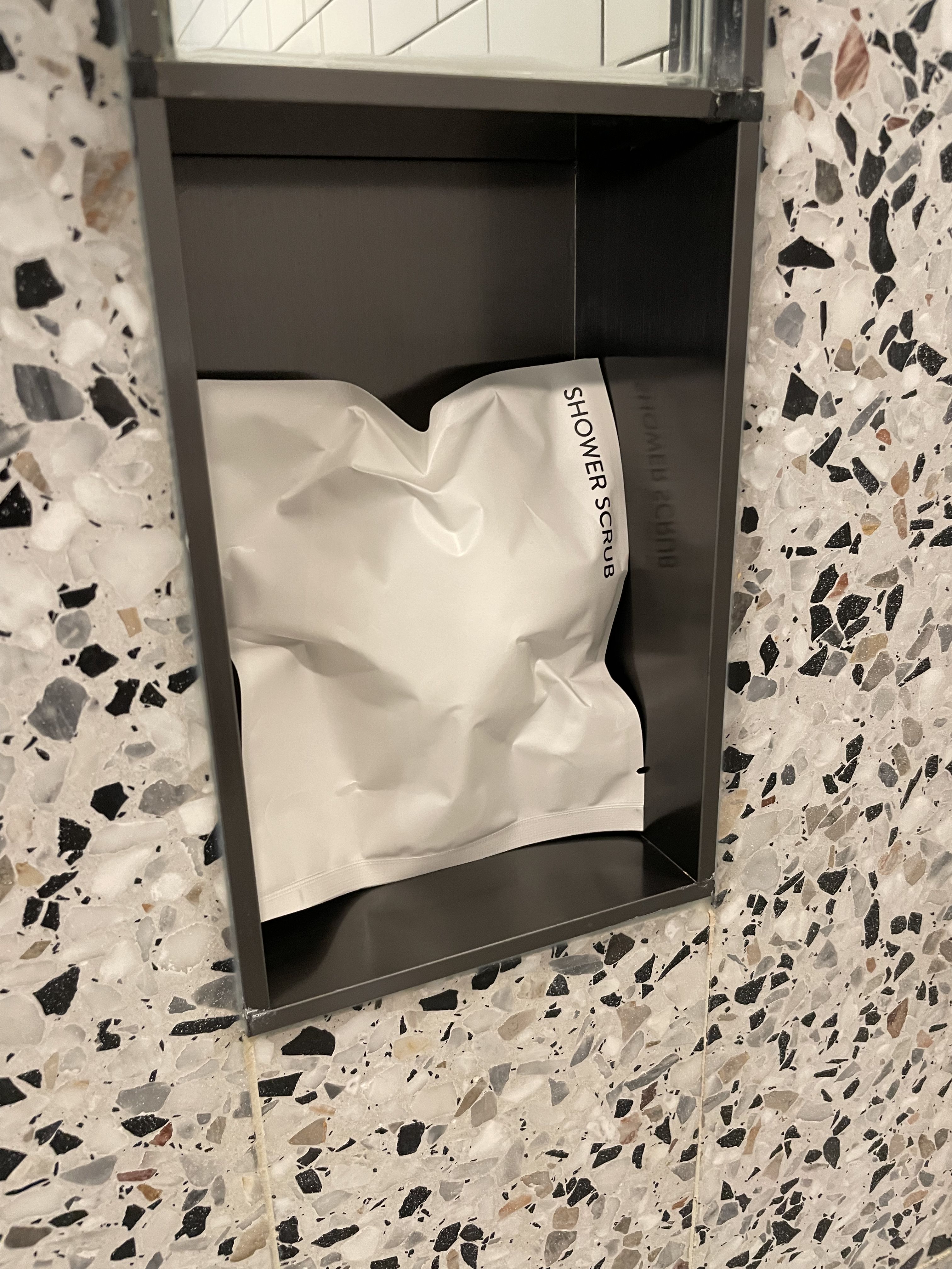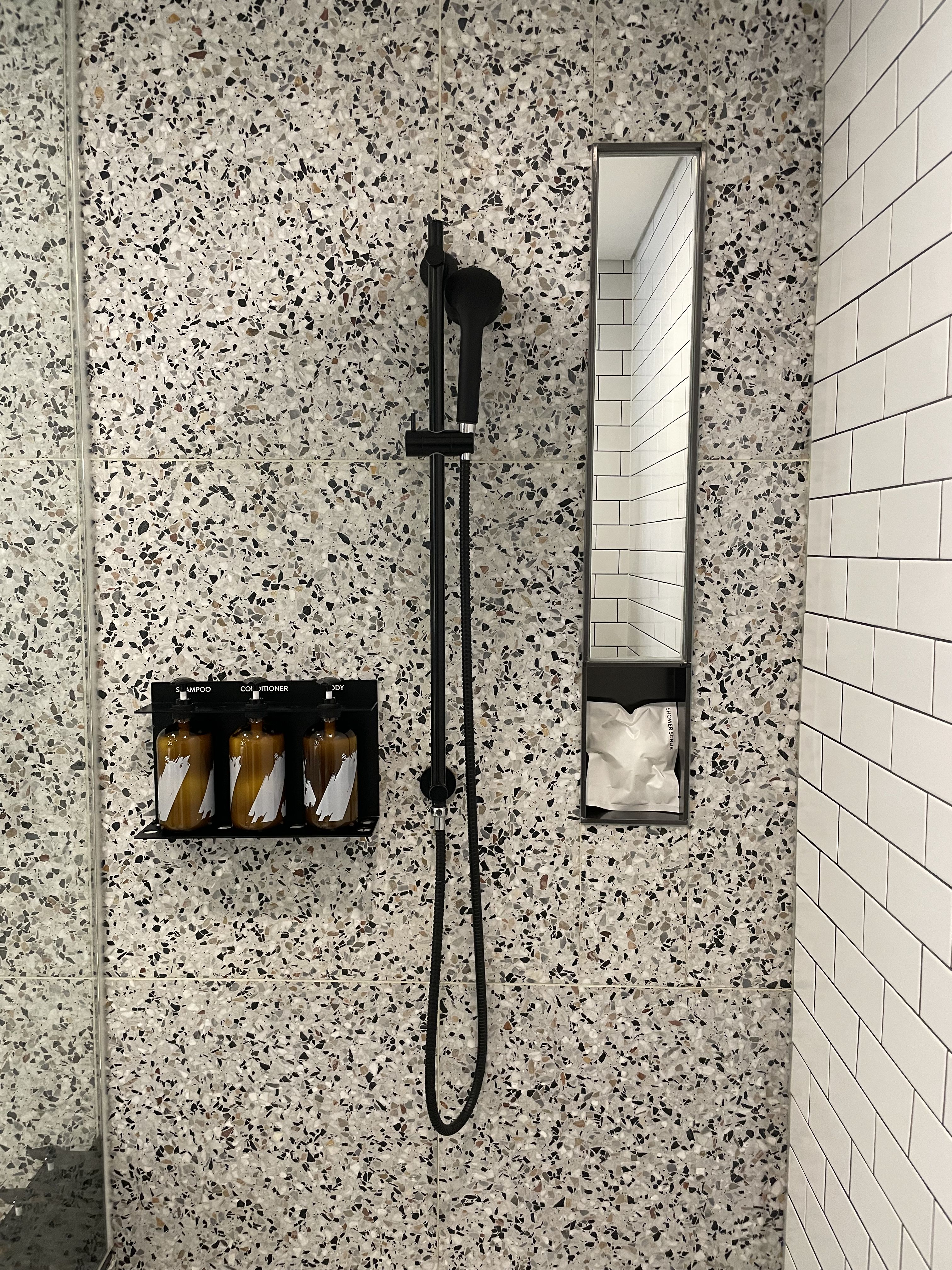 그리고 샤워 부스의 크기도 상당히 큰 편이었는데요, 샴푸와 컨디셔너, 바디워시가 구비되어 있고, 샤워볼까지 준비되어 있었던 점이 너무 좋았어요.