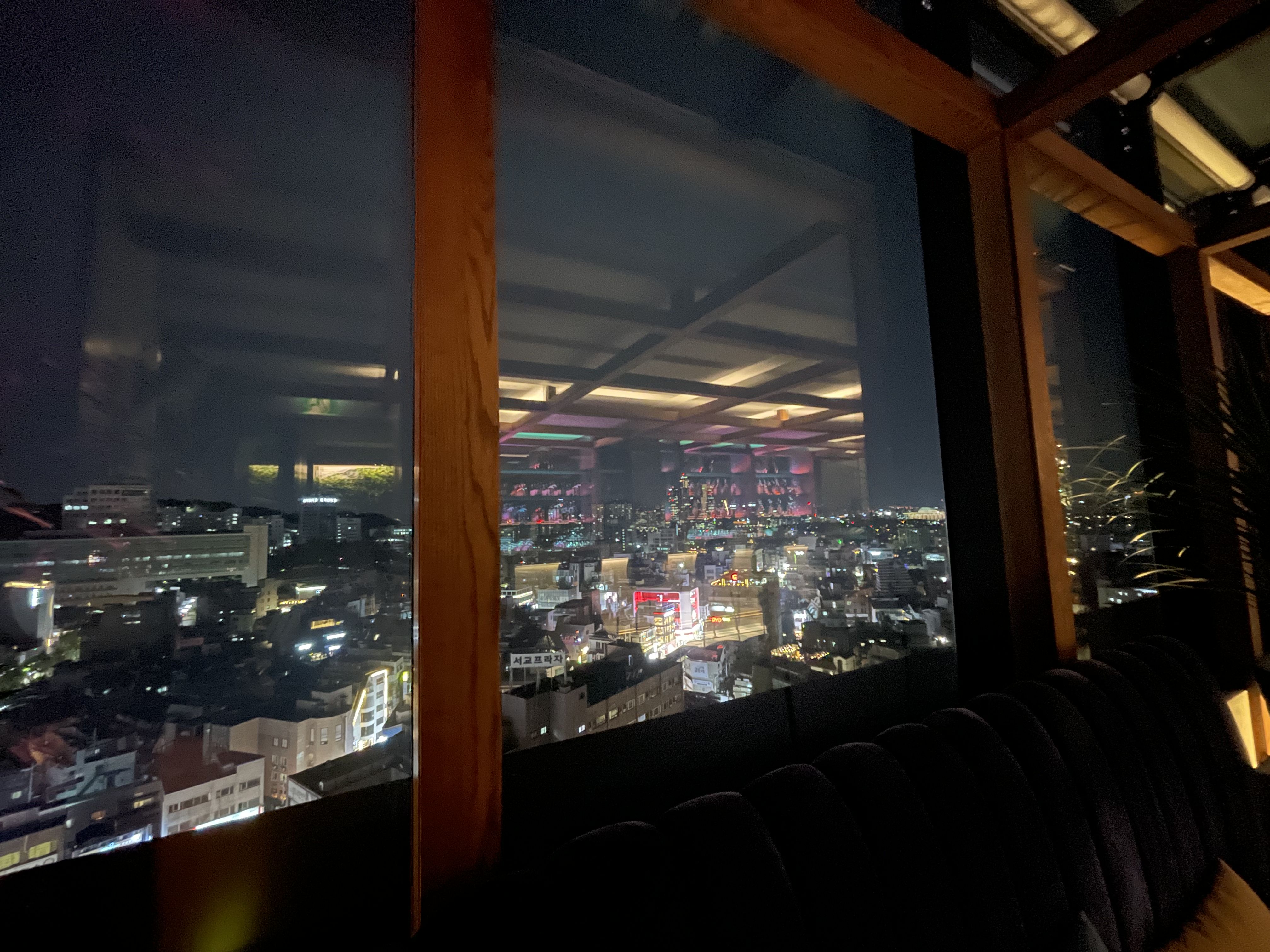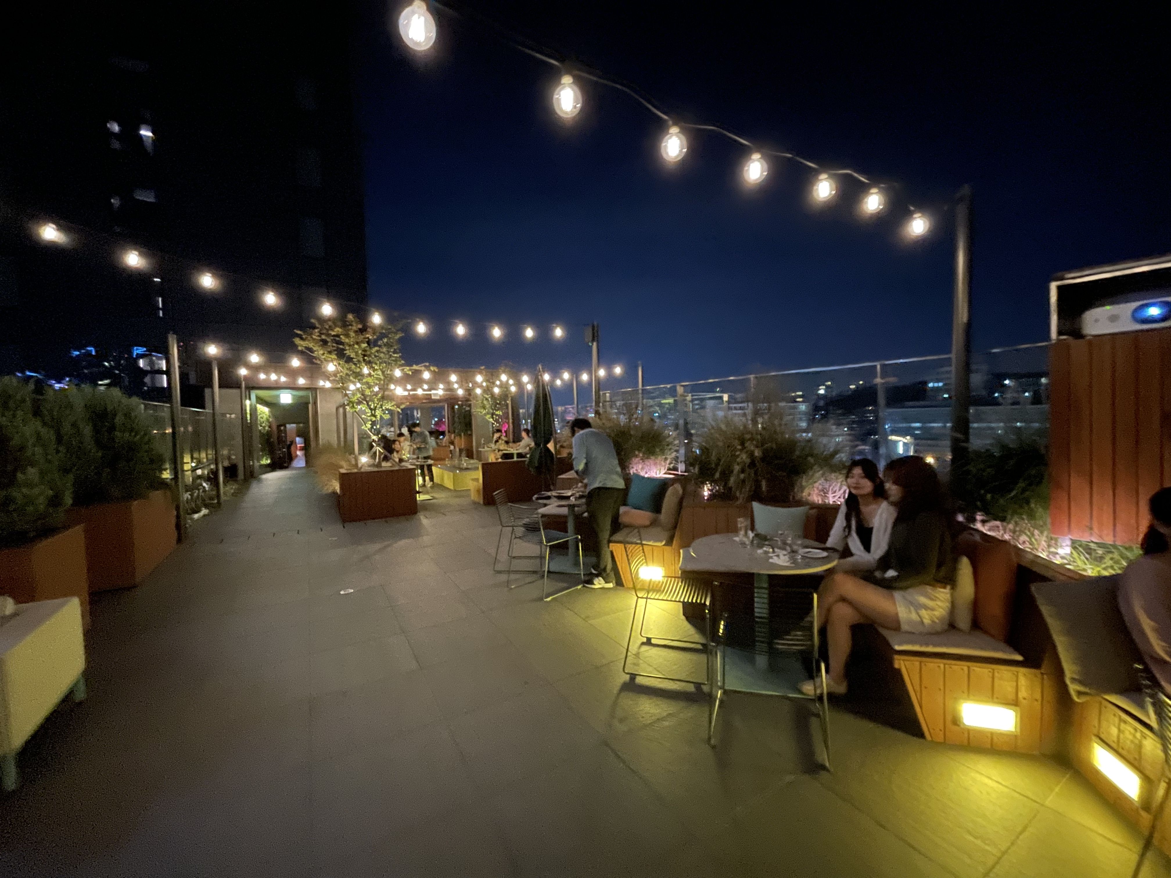 음식과 칵테일을 다 먹고 아쉬운 마음에 루프탑으로 나가서 야경을 좀 구경했는데요, 실내도 나쁘진 않았지만 야외에서 먹는 음식과 술은 또 다른 느낌이었을 것 같아요.