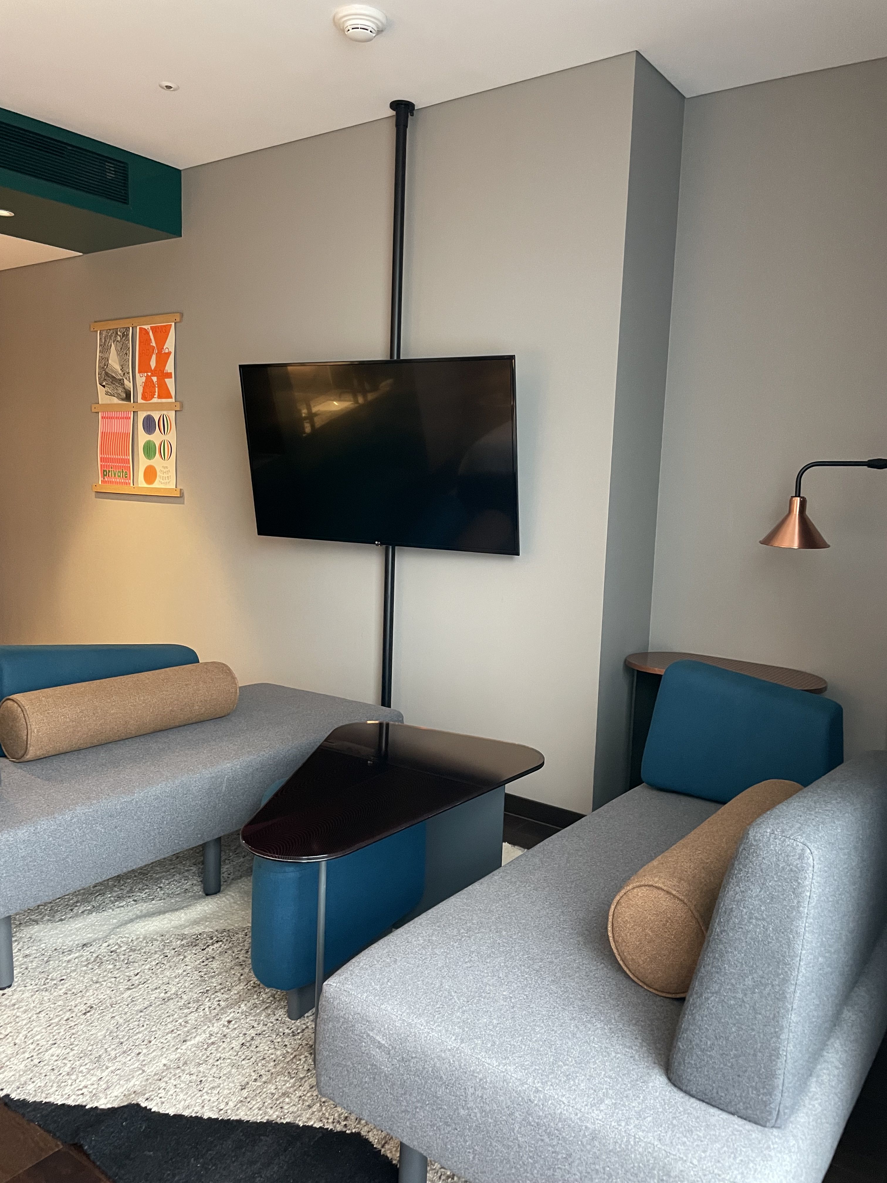 미니 소파 두 개가 탁자를 중심으로 놓여 있었는데 사실 착석감이 그다지 좋지는 않았어요. 쿠션이 있었지만 등받이가 조금 불편한 느낌이었습니다.