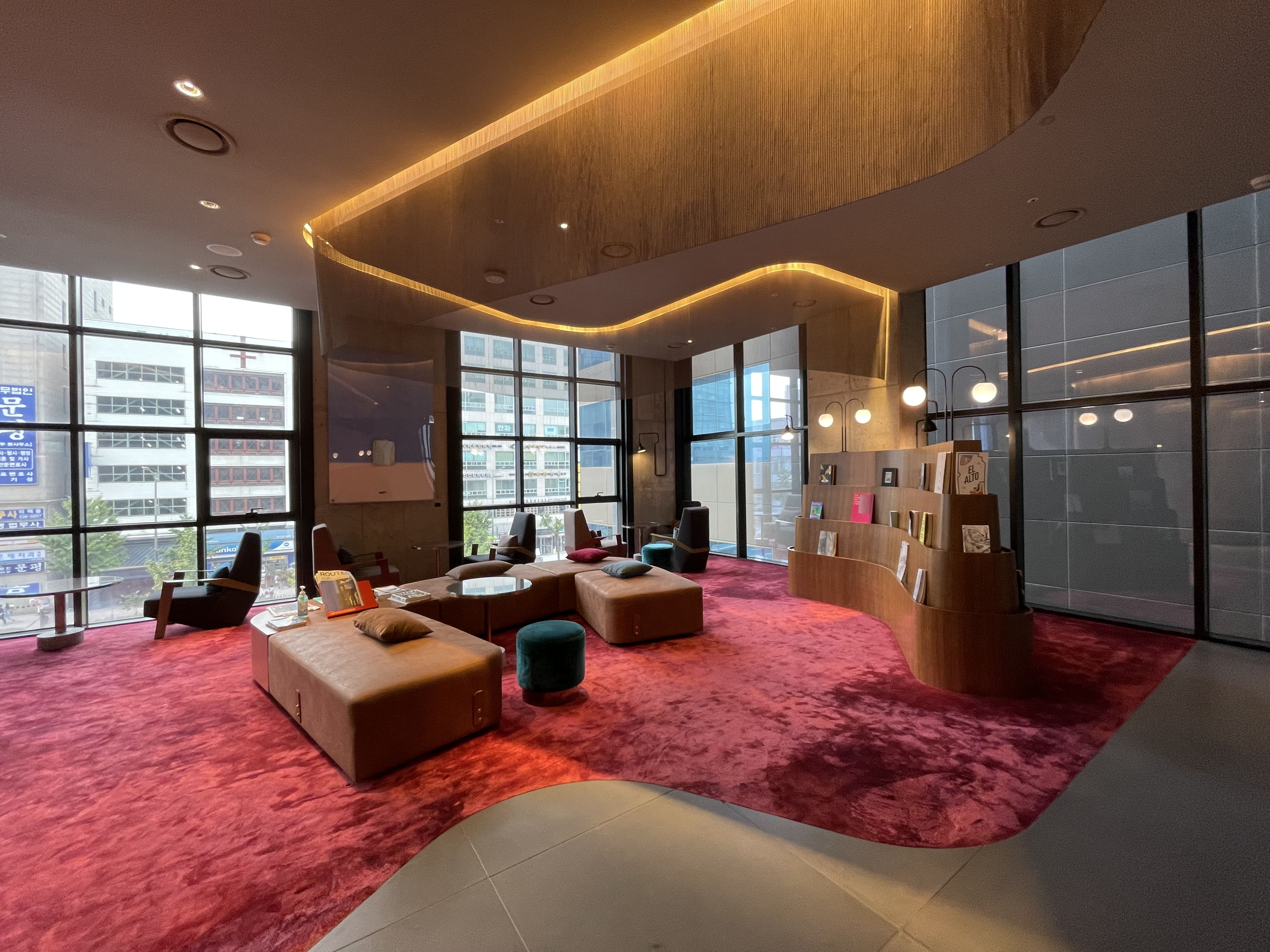 인테리어로 유명한 호텔답게 로비 역시 감각적인 인테리어를 느낄 수 있었는데요, 미드 센추리 무드를 베이스로 편안하게 쉴 수 있는 휴게 공간이 잘 마련되어 있었습니다.