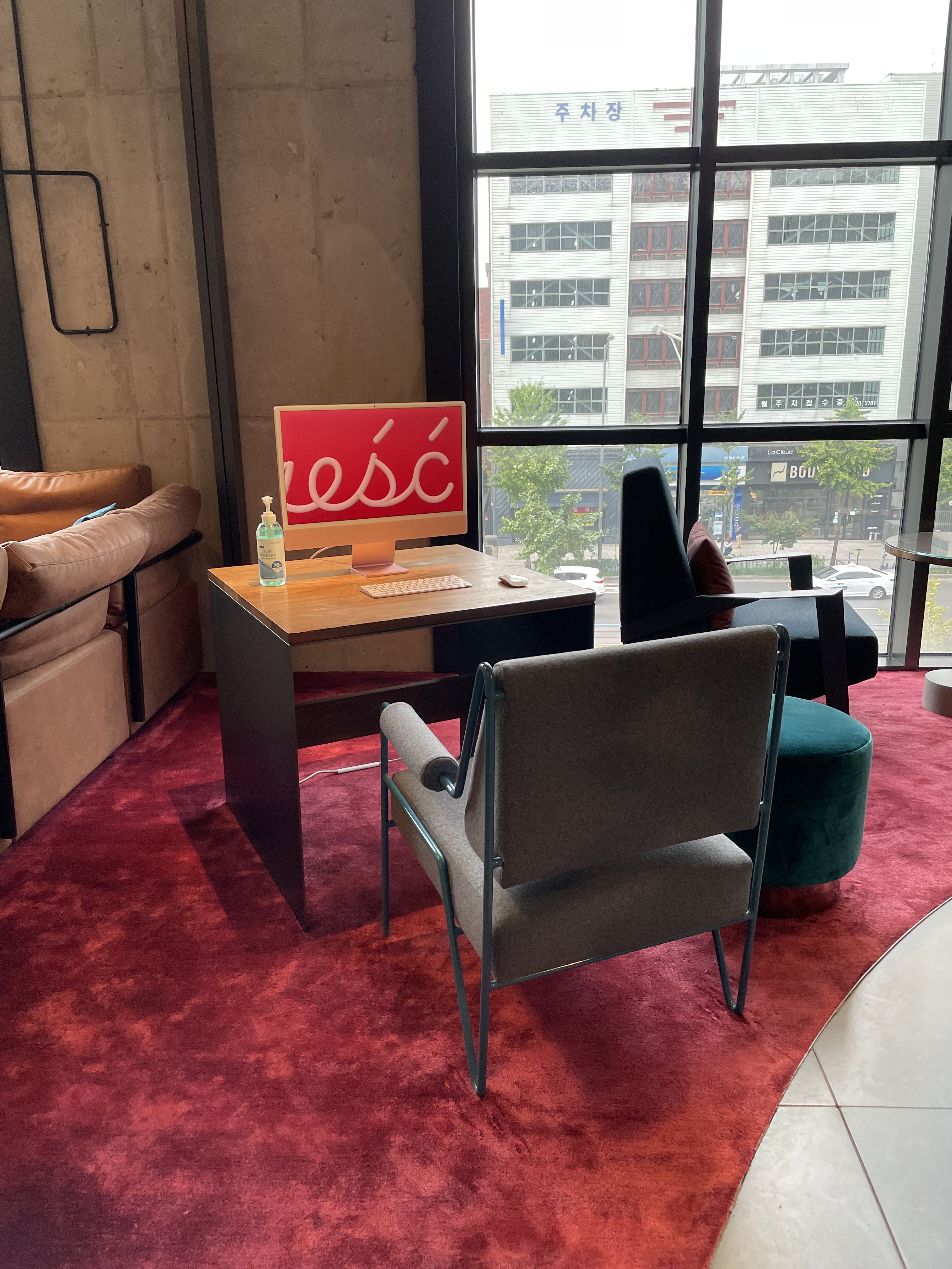 그 외에도 휴식을 취하며 볼 수 있는 매거진들과 최근에 애플에서 나온 신형 아이맥 24형을 쓸 수 있는 공간이 마련되어 있더라고요. 오렌지 컬러의 아이맥은 실제로 처음 보는데 실물이 굉장히 이뻤어요.