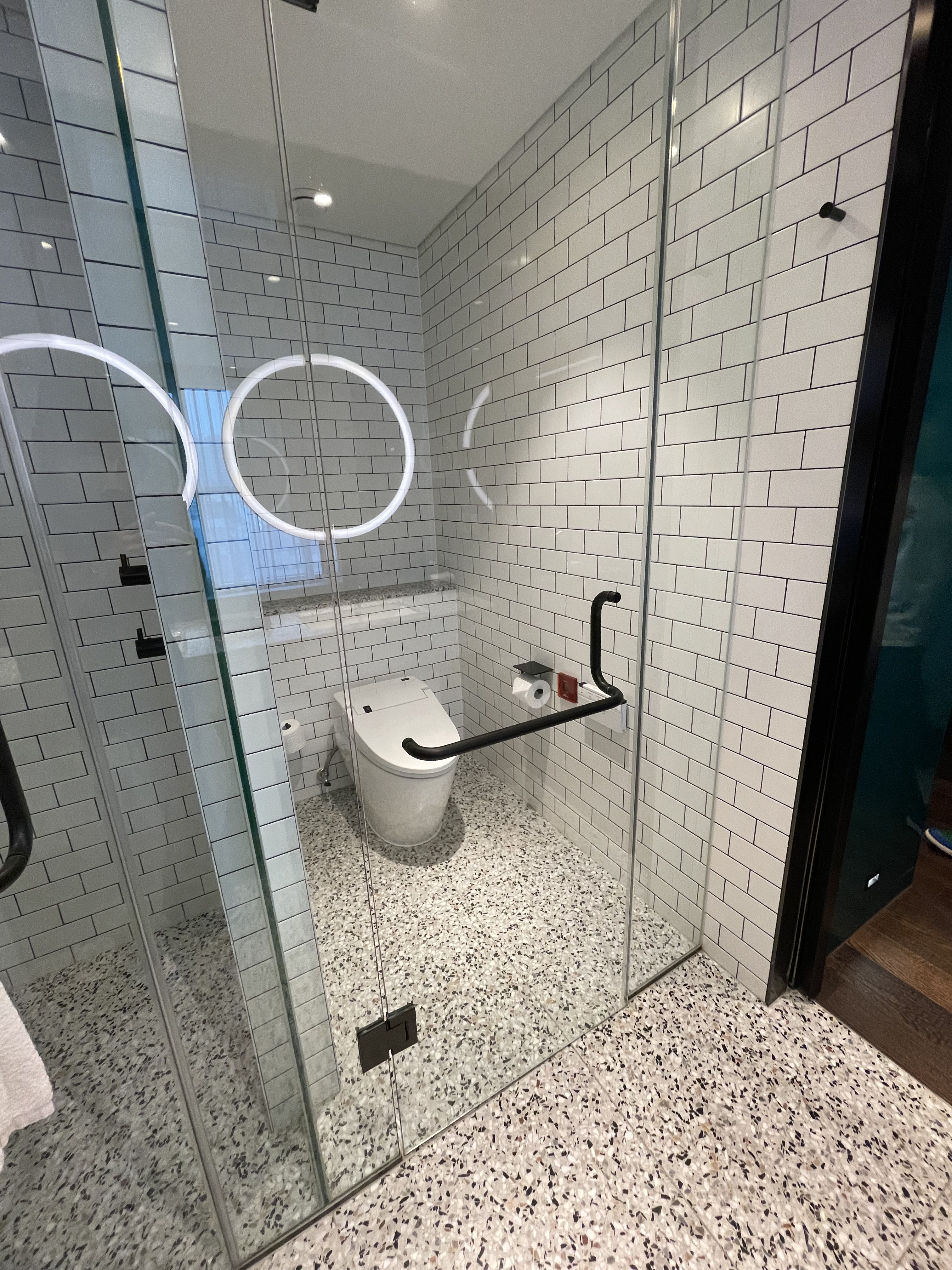 화장실 또한 화이트톤으로 굉장히 깔끔했어요. 특히 비데가 설치되어 있어서 화장실 사용에 민감한 분들에게 아주 좋은 옵션일 것 같아요.