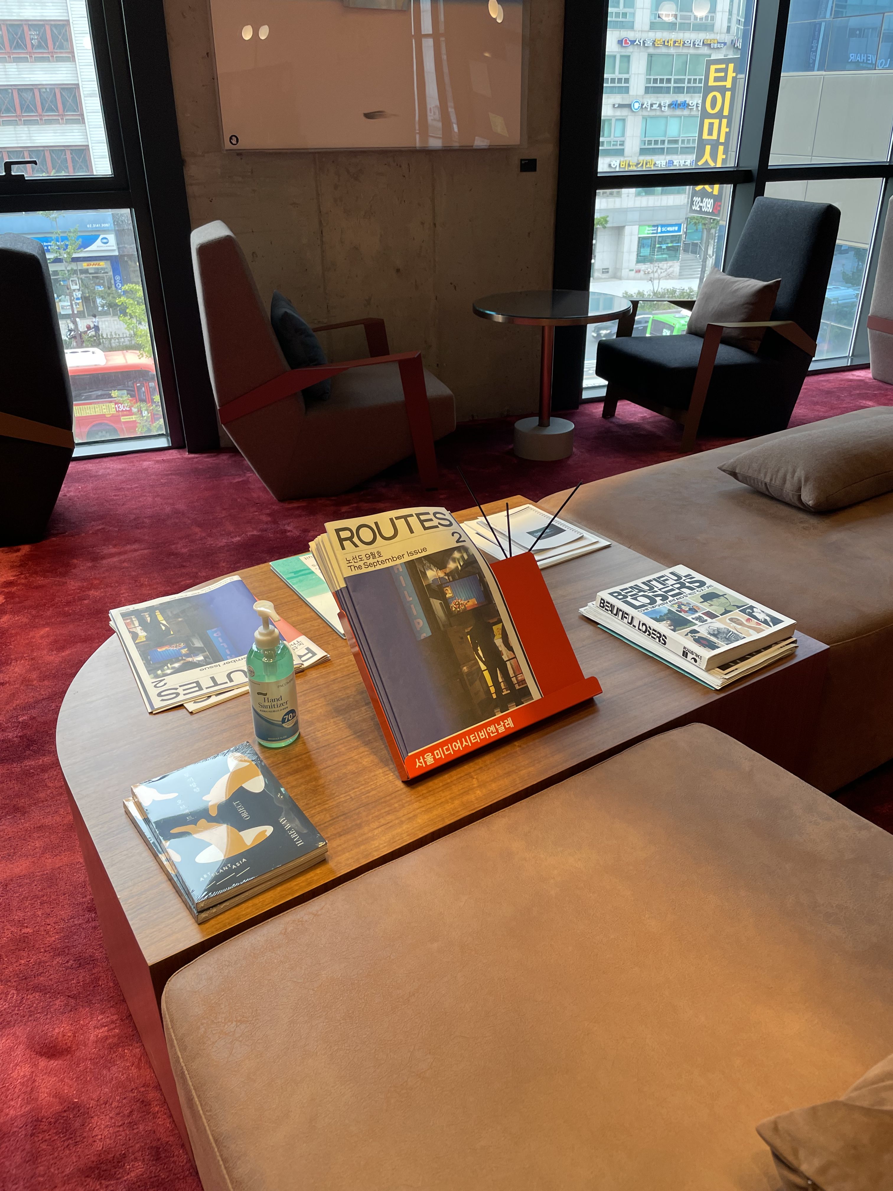 인테리어로 유명한 호텔답게 로비 역시 감각적인 인테리어를 느낄 수 있었는데요, 미드 센추리 무드를 베이스로 편안하게 쉴 수 있는 휴게 공간이 잘 마련되어 있었습니다.