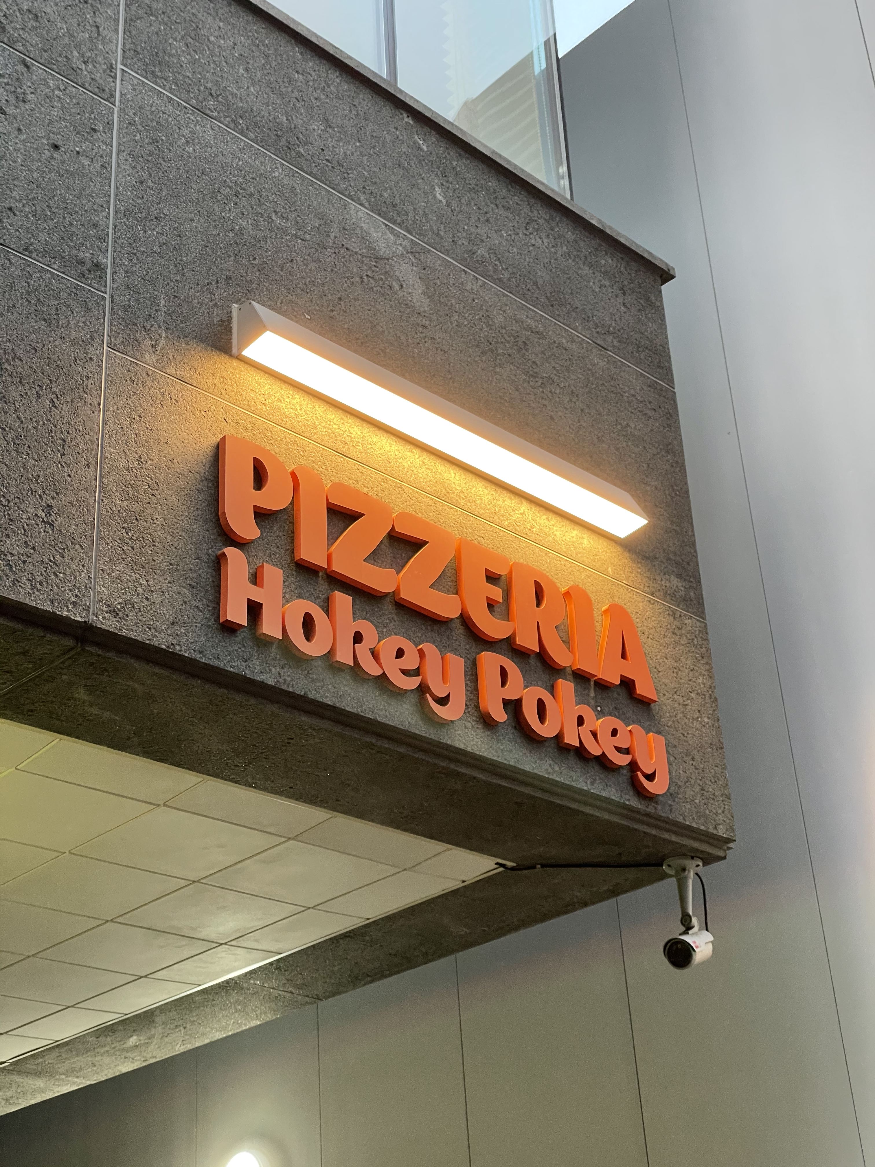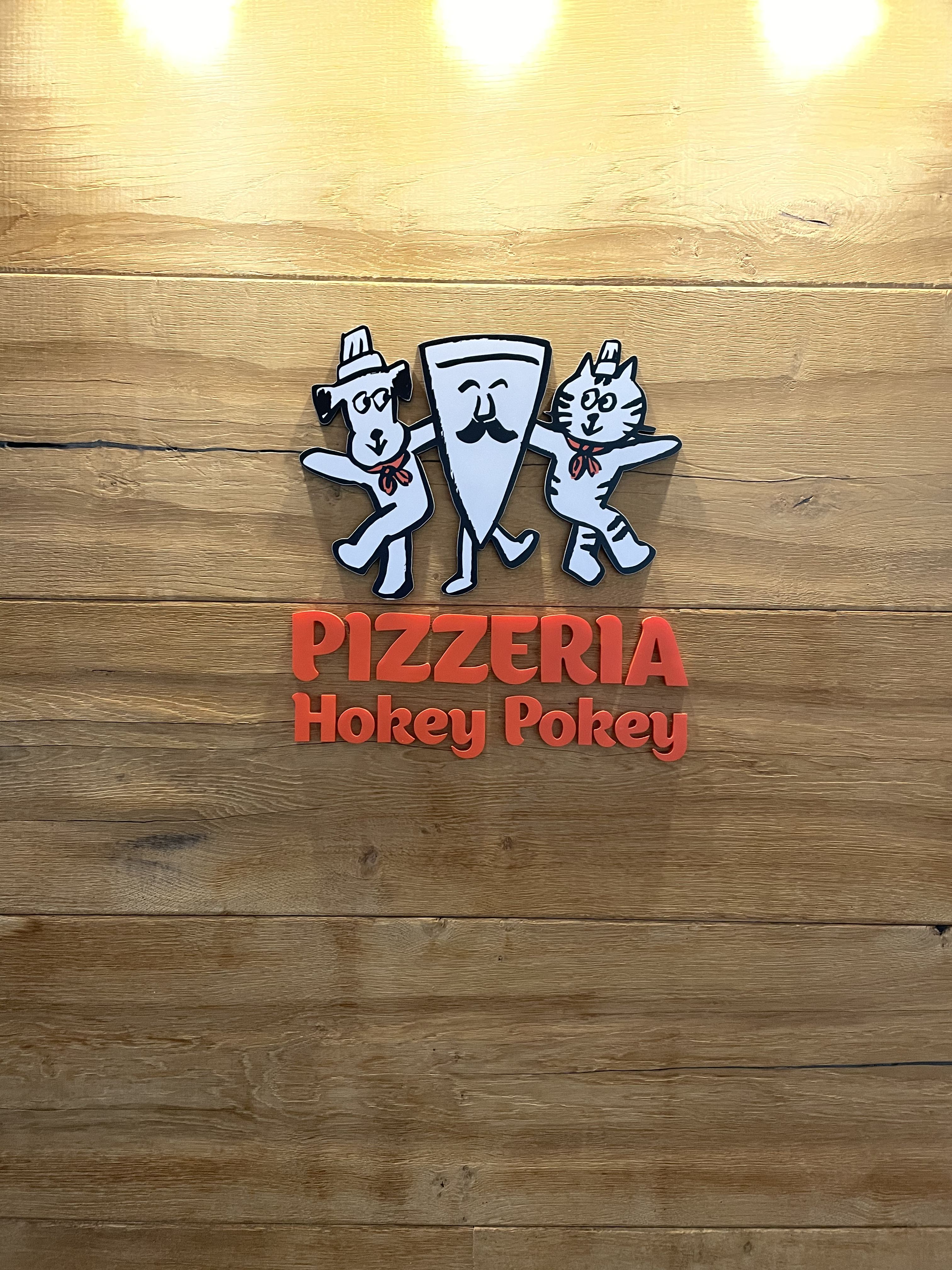 가게 입구로 들어서면 귀여운 캐릭터와 피제리아 호키포키의 로고가 보이는데요, 저의 뇌피셜로는 왼쪽 강아지 캐릭터의 이름이 호키이고, 오른쪽 고양이 캐릭터의 이름이 포키이지 않을까라는 생각이 드네요.