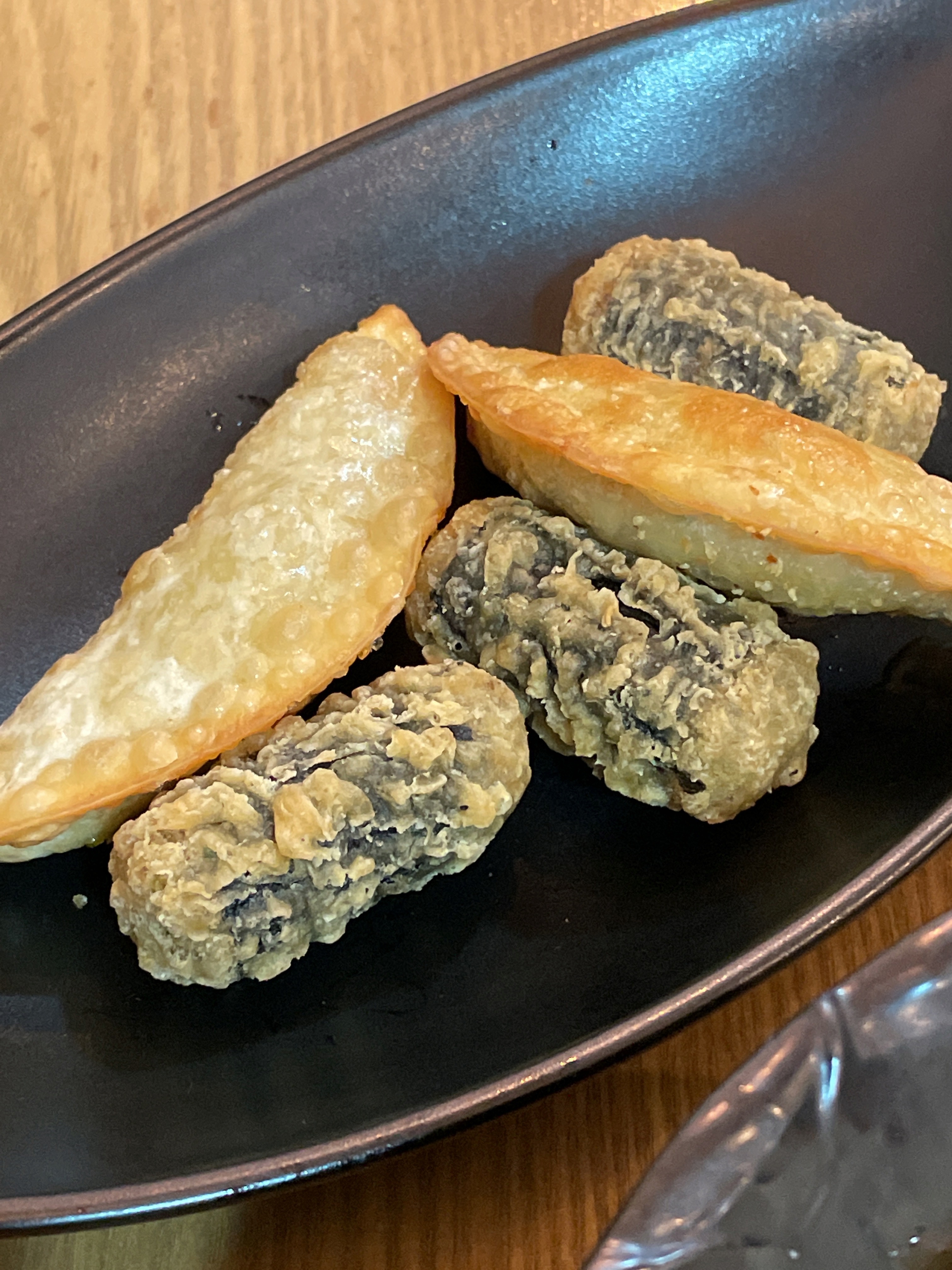 이번엔 김만튀김인데요, 역시 분식집에선 뭐든지 떡볶이 국물에 찍어 먹어야죠. 만두 튀김과 김말이 튀김 모두 당면이 들어가서 떡볶이 국물에 찍어 먹으면 튀김의 바삭함과 당면의 꼬들꼬들함을 모두 느끼며 먹을 수 있어요.