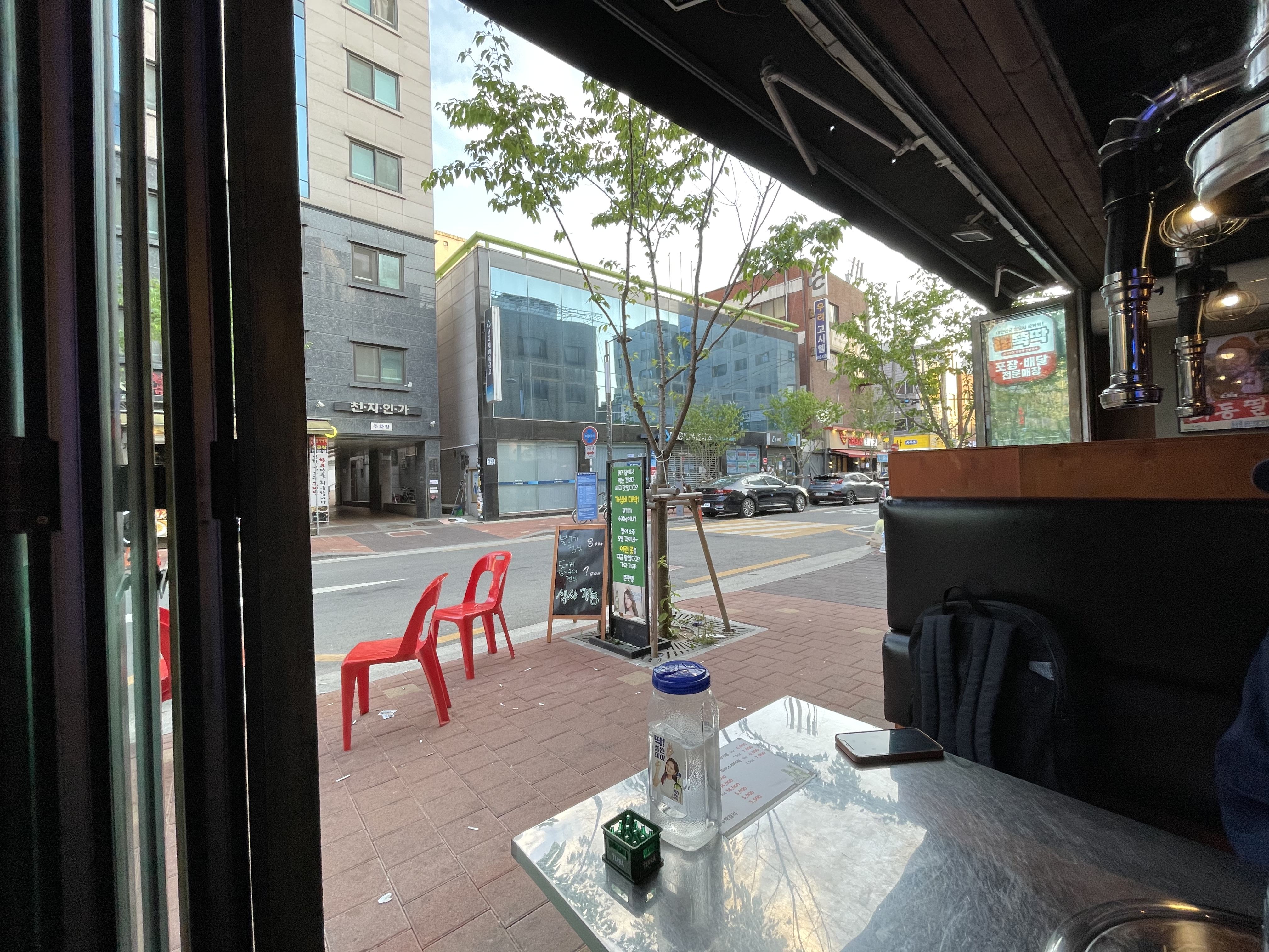 가게는 1층과 2층으로 이루어져 있는데요, 1층에는 테라스가 열려 있어서 좀 더 개방감 있는 분위기에서 식사를 할 수 있어요. 그래서 저와 여자친구도 테라스 쪽 자리를 잡았어요.
