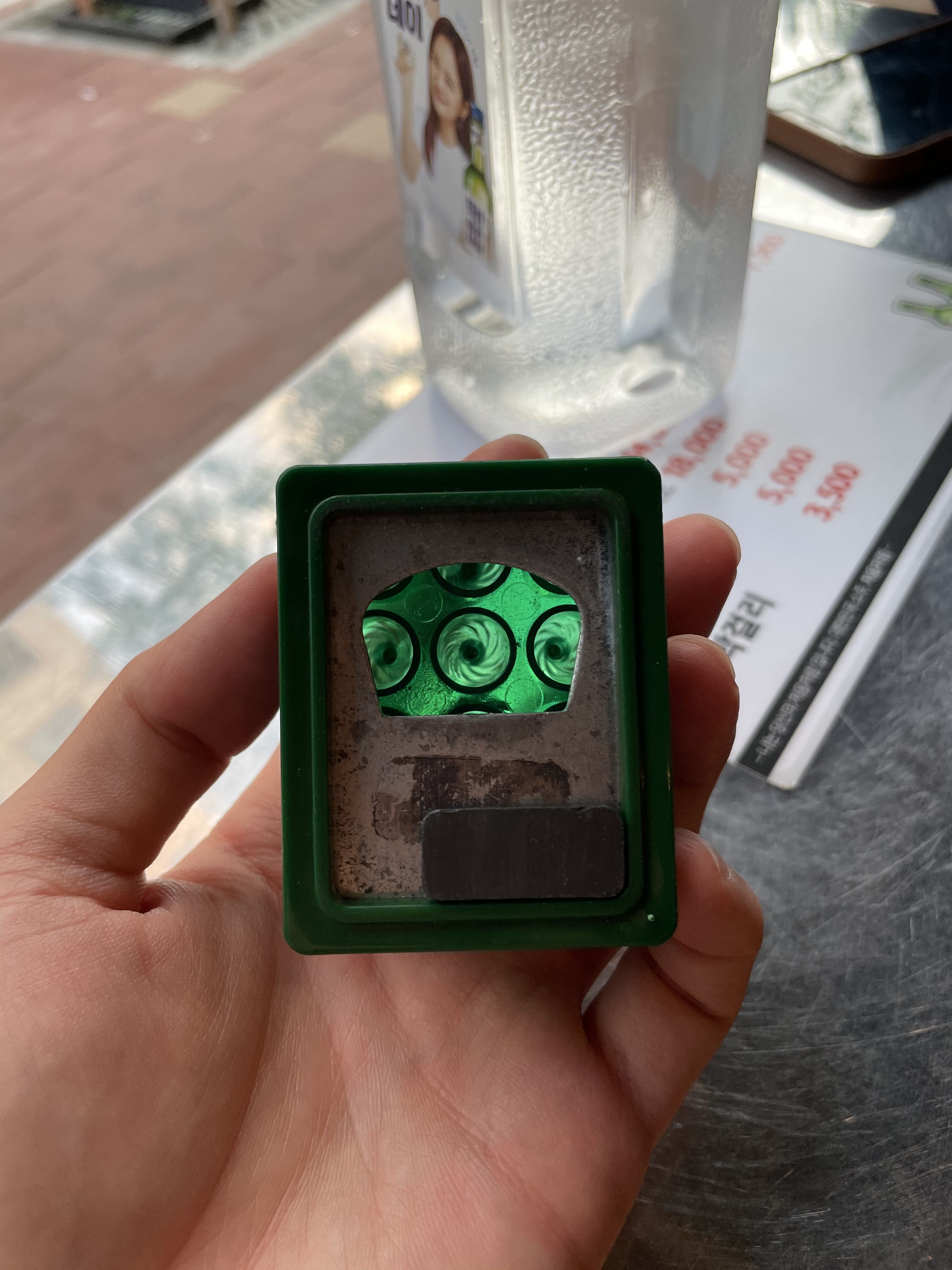 주문한 음식을 기다리는 와중에 맥주 상자 모양의 귀여운 병따개가 눈에 띄었어요. 참고로 이 날 생맥주를 마시려고 했는데 왜인지 사장님께서 생맥주는 불가하다고 하여 테라 병맥주를 시켰어요. (아마도 생맥주 기계가 고장 나지 않았나 생각이 듭니다.)