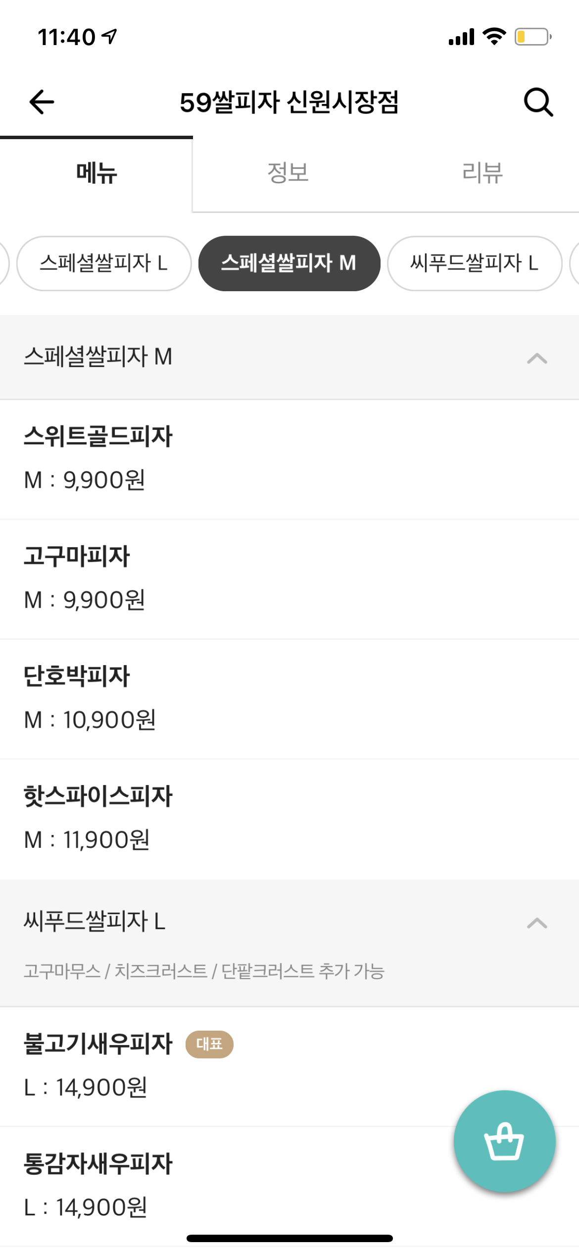 오구쌀피자에는 정말 다양한 메뉴가 있는데요, 저는 원래 명품쌀피자인 슈퍼콤비네이션 M을 주로 시켜 먹었어요. 뭘 고를지 애매할 때는 콤비네이션만한 메뉴가 없더라고요. 하지만 이날은 축구 경기를 보며 먹을 생각을 해서인지 왠지 매콤한 메뉴가 땡겨서 스페셜쌀피자인 핫스파이스피자 M을 선택했어요. 사이즈 M 기준으로 핫스파이스피자는 11,900원이에요.