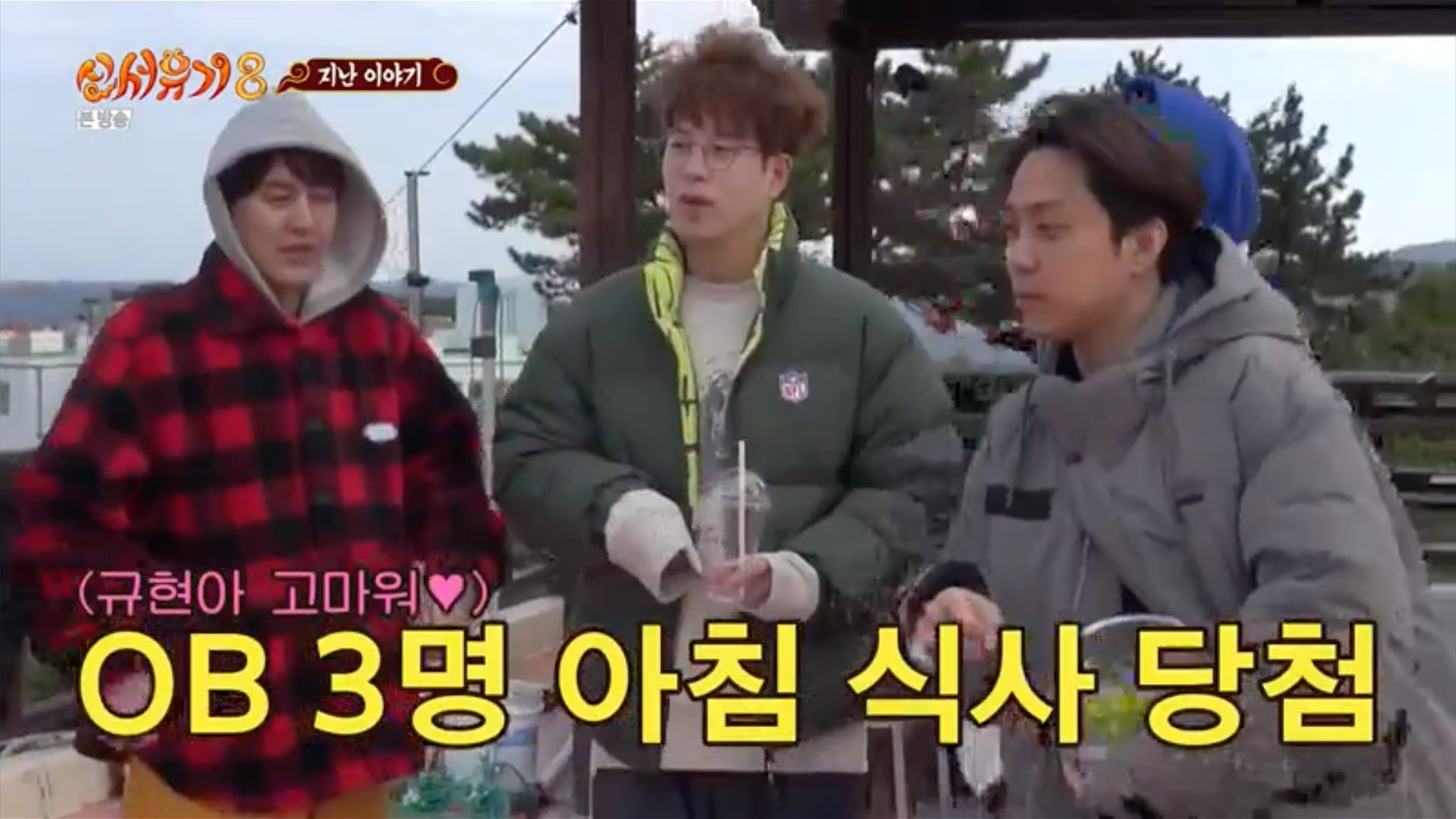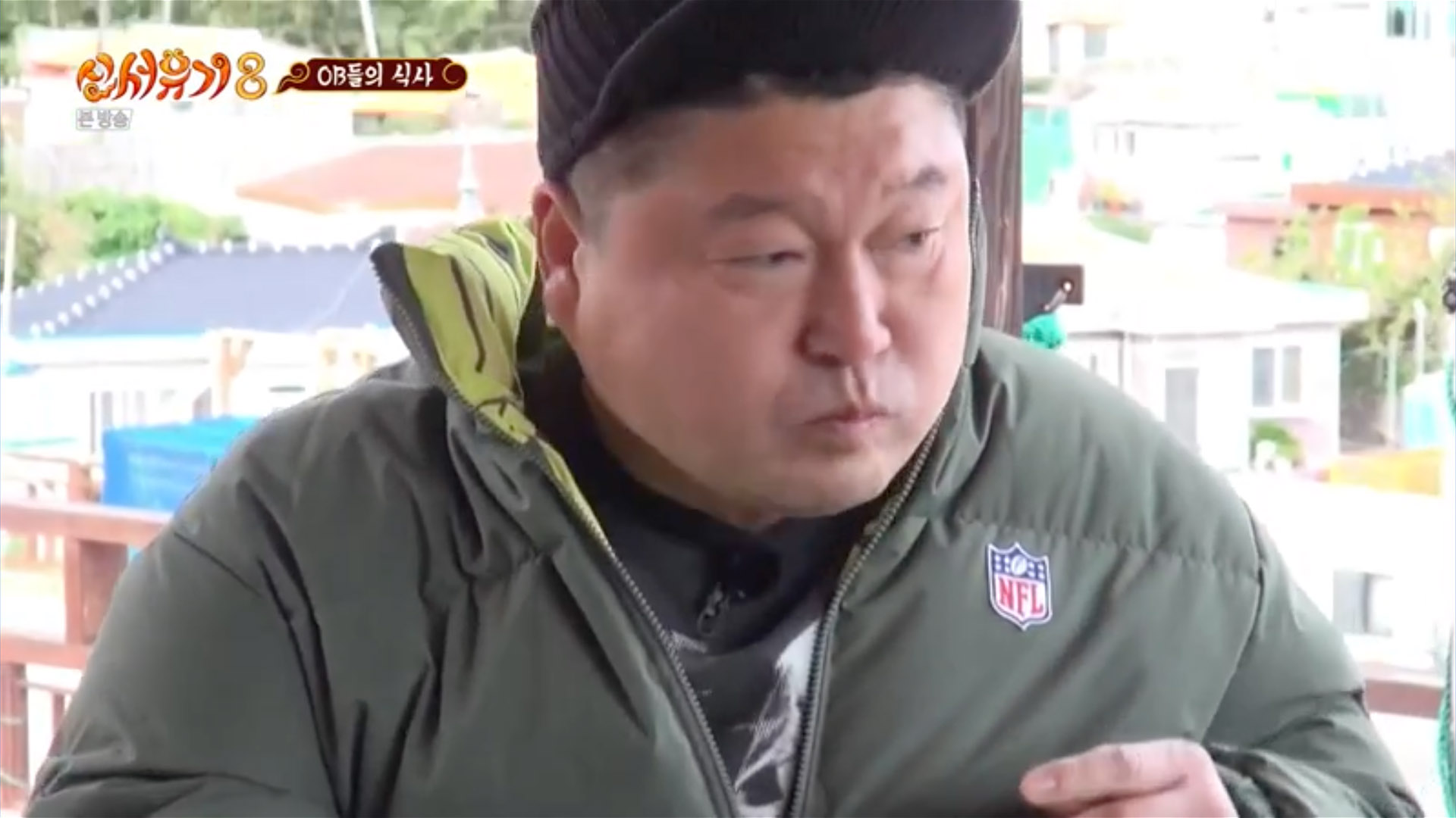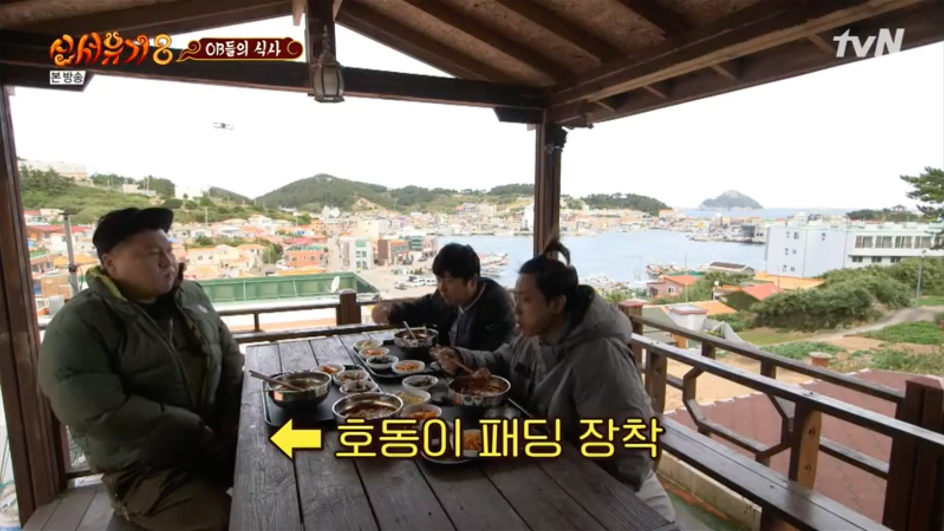 신서유기8 10화에서 강호동, 이수근, 은지원 님이 정자에서 아침밥을 먹는데 날씨가 많이 추워서 그런지 강호동 님이 피오 님의 NFL 클럽 리버시블 다운 패딩을 빌려 입은 모습도 볼 수 있었어요.