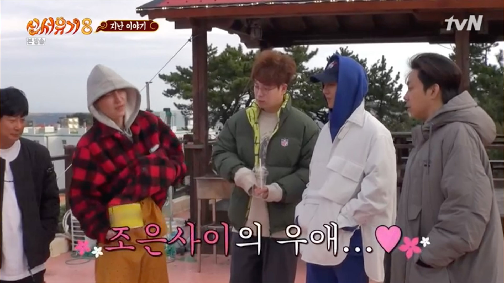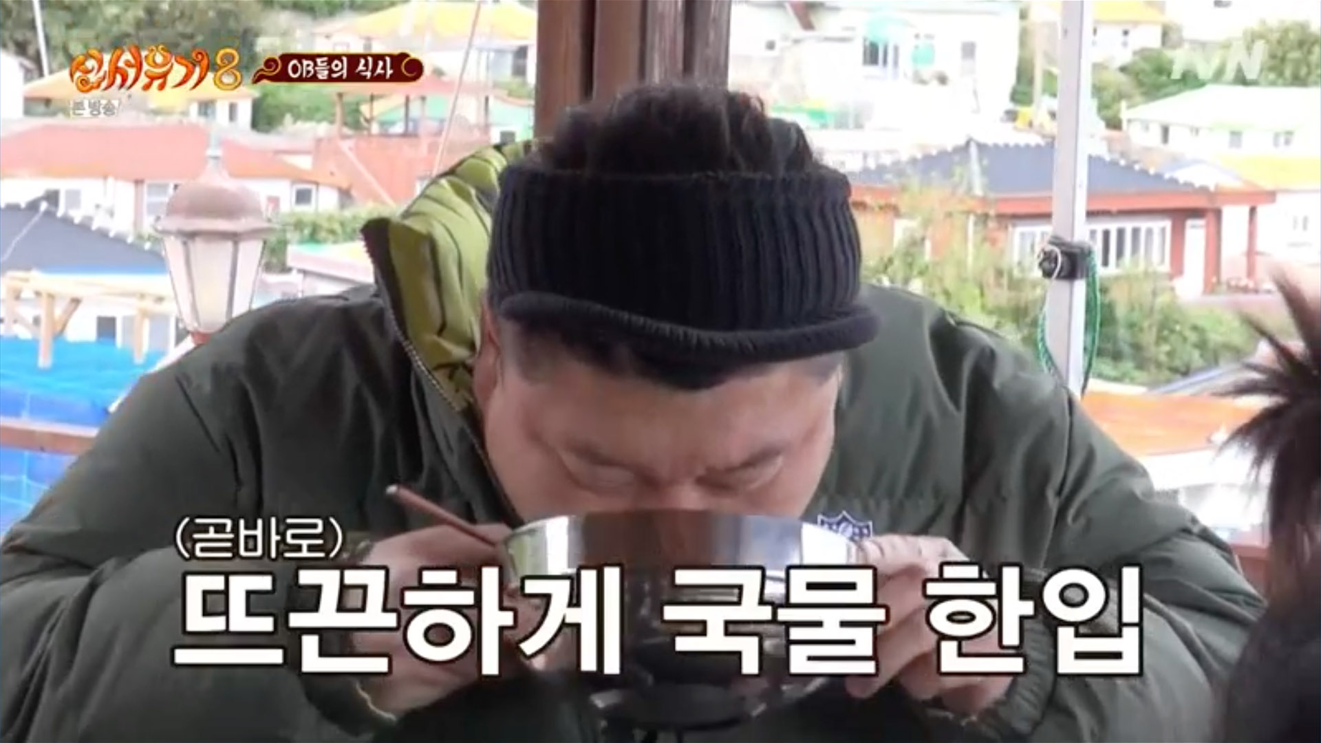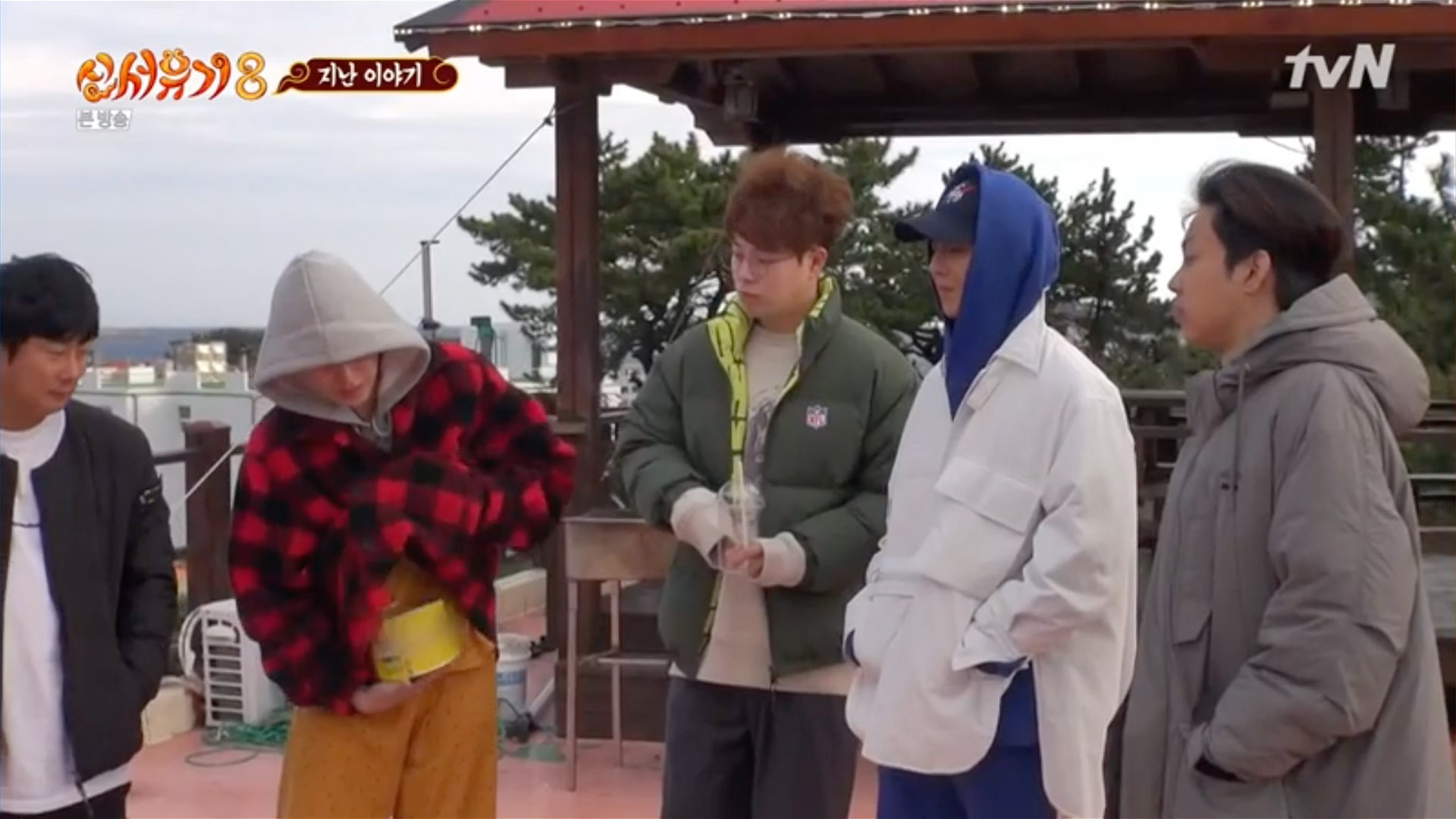 신서유기8 10화에서 강호동, 이수근, 은지원 님이 정자에서 아침밥을 먹는데 날씨가 많이 추워서 그런지 강호동 님이 피오 님의 NFL 클럽 리버시블 다운 패딩을 빌려 입은 모습도 볼 수 있었어요.