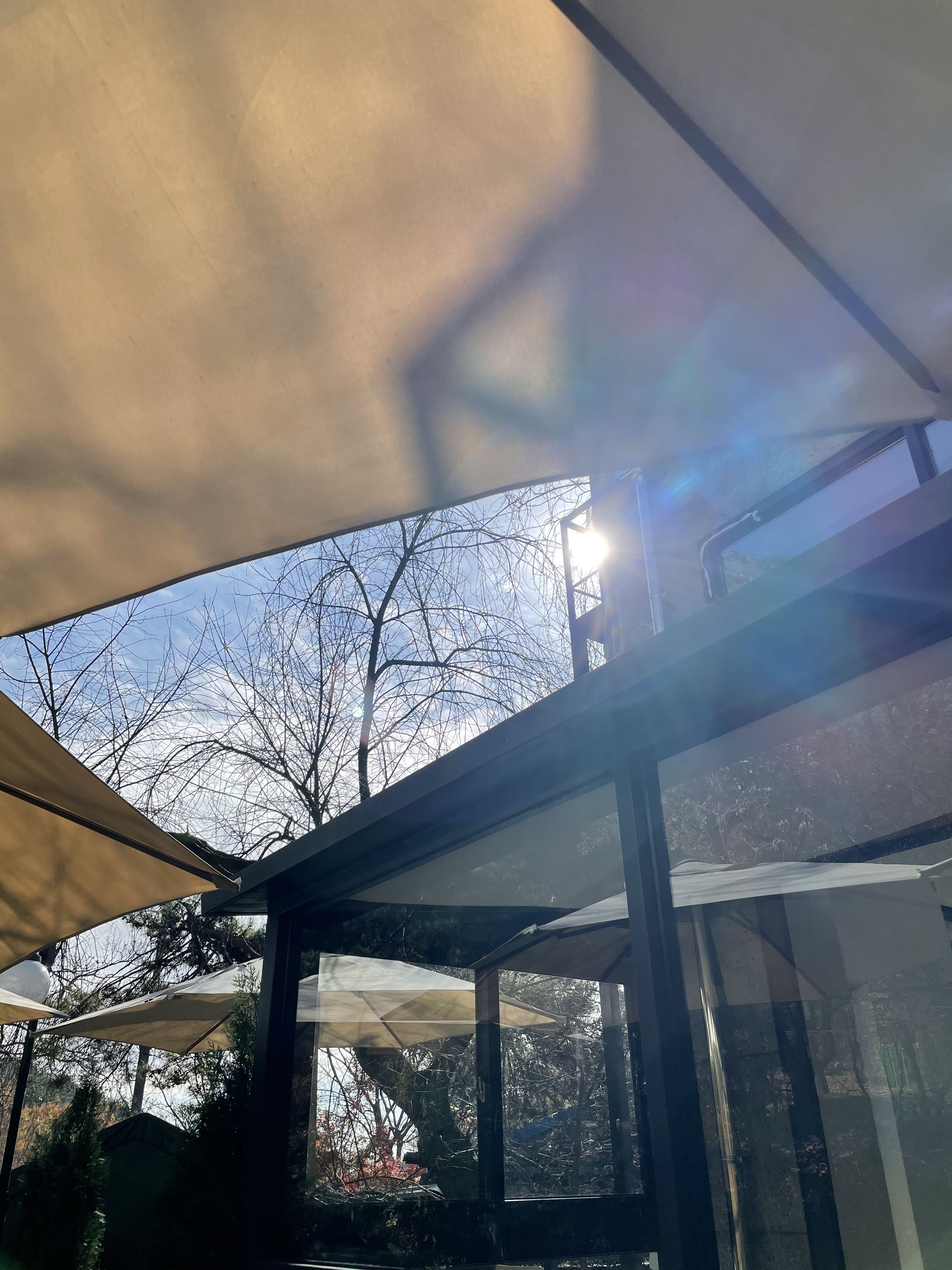 카페 내부도 좋았지만 날씨가 너무 포근하고 좋아서 야외 테이블로 자리를 잡았어요. 테라스 곳곳에 난로가 설치되어 있어서 그렇게 많이 춥지는 않더라고요.