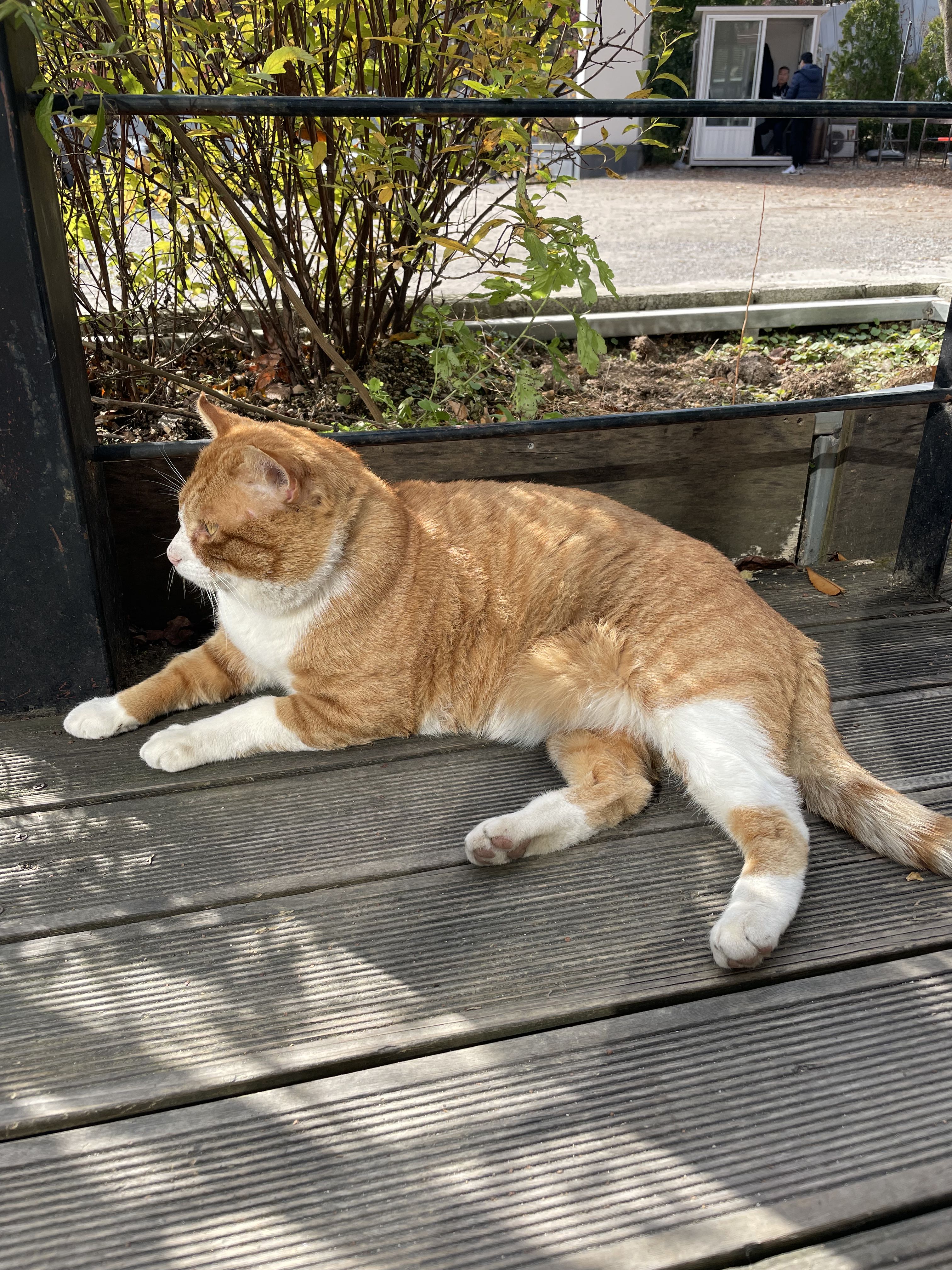 카페에서 나와보니 고양이 한 마리가 일광욕을 즐기는 모습도 볼 수 있었고요. 굉장히 잘 먹어서 그런지 몸집이 엄청나더라고요.