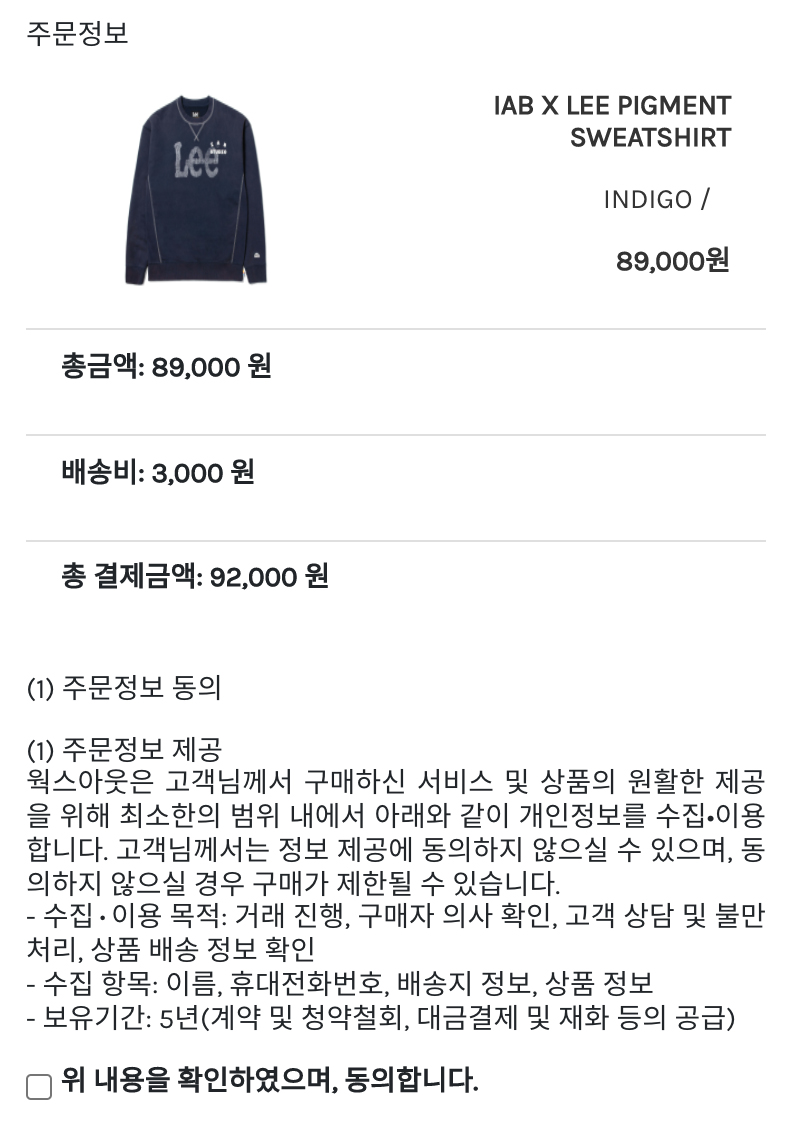지금까지 웍스아웃에서 진행한 아이앱스튜디오 X 리(Lee) 당첨 피그먼트 스웨트셔츠 인디고 제품 구매 방법에 대해 알려드렸는데요, 사실 웍스아웃 사이트가 유저 입장에서는 그렇게 친절한 사이트는 아니기 때문에 처음 라플에 당첨된 분들의 경우 구매하는 데 헷갈릴 수도 있을 것 같은 생각에 이런 포스팅을 준비해봤습니다.