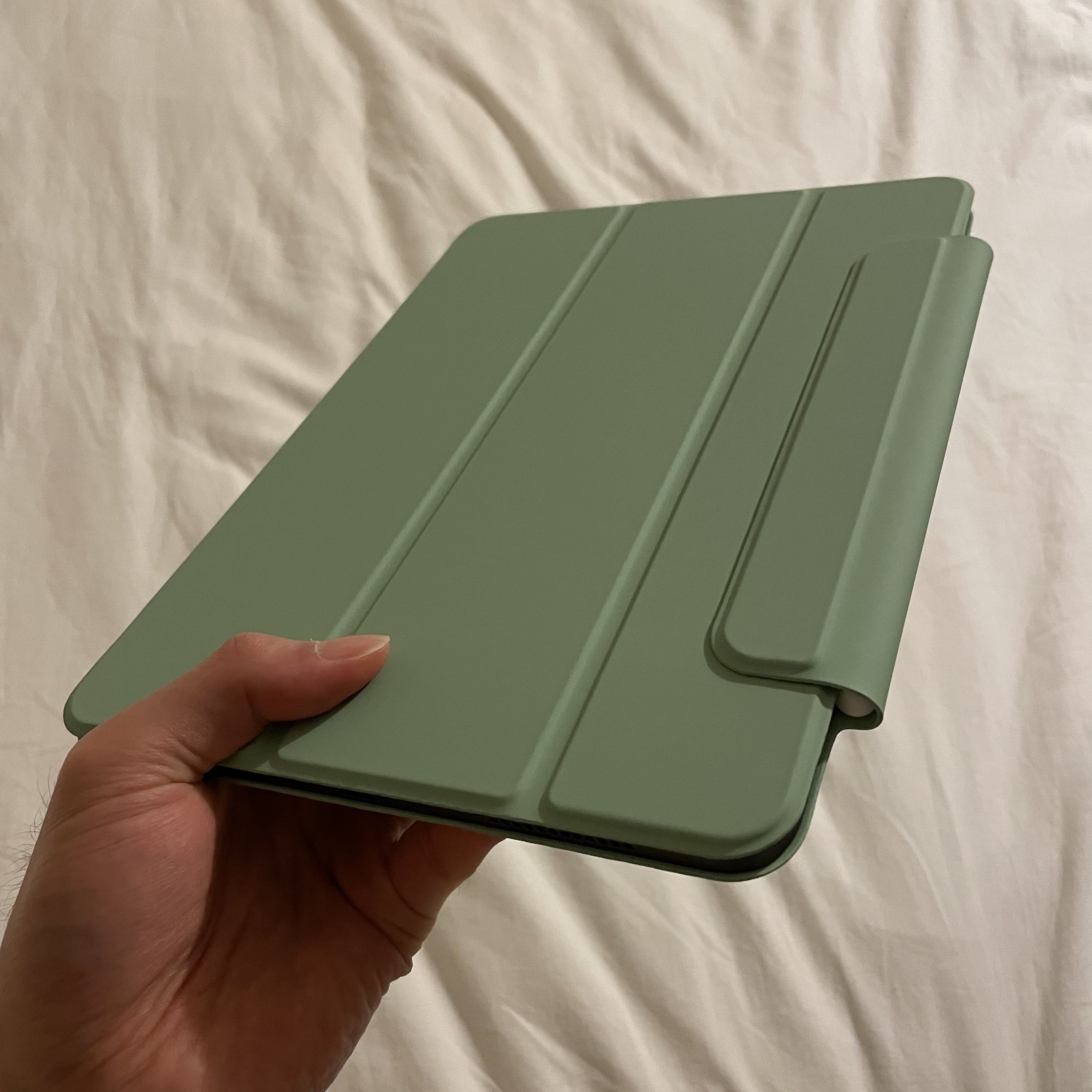 패키지를 열면 이렇게 아이패드 에어4만을 위한 마그네틱 폴리오 펜슬 케이스의 모습을 확인할 수 있습니다. 크리츠의 마그네틱 스마트 폴리오 케이스는 총 8가지의 컬러가 준비되어 있는데요, 그레이, 네이비, 인디고핑크, 라벤더, 미드나잇그린, 민트그린, 블랙, 아쿠아블루가 있습니다. 그중 저는 민트그린 컬러를 선택했는데요, 제가 구매한 아이패드 에어4의 컬러가 스페이스그레이 컬러이다 보니 케이스는 밝고 상큼한 느낌이면 좋을 것 같다는 생각에 선택하게 되었습니다.
