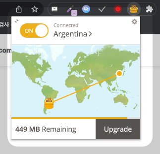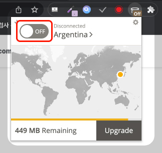 이 버튼을 눌러 OFF를 ON으로 활성화시켜주면 여러분의 인터넷 환경이 바로 아르헨티나로 접속되게 됩니다. 정말 쉽죠?