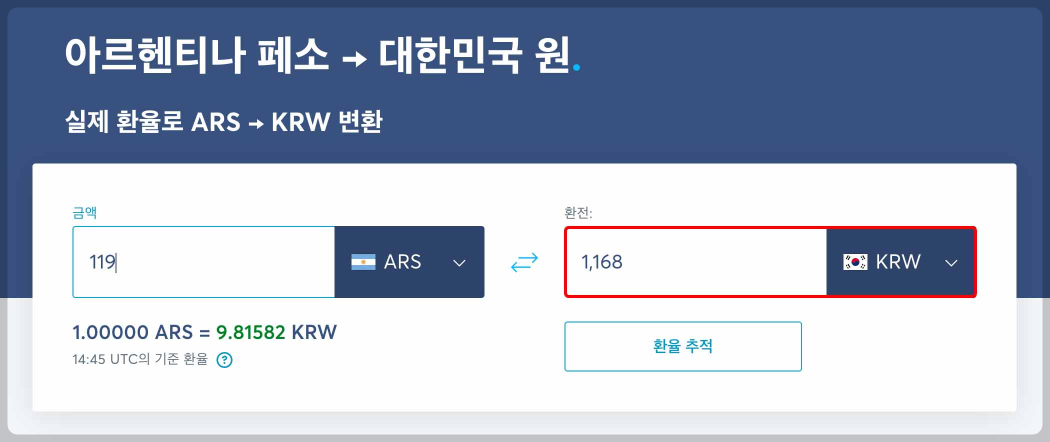 여기서 ARS는 아르헨티나 화폐 단위 페소로 매달 119페소의 금액이 청구된다는 뜻인데요, 119라는 숫자가 우리가 생각했을 땐 비싼 금액이 아닌가라는 생각이 들 수 있지만 2022년 기준 환율을 적용했을 때 ARS 119.00은 우리나라 돈으로 약 1,168원 정도의 가치를 보이고 있습니다.