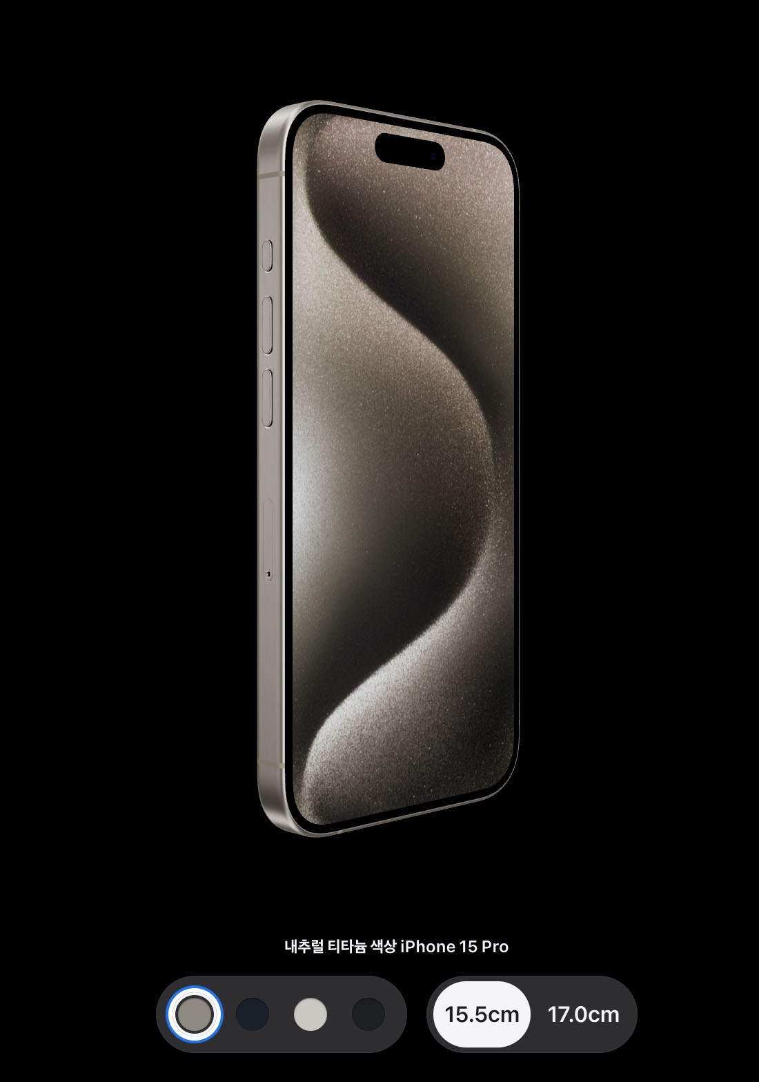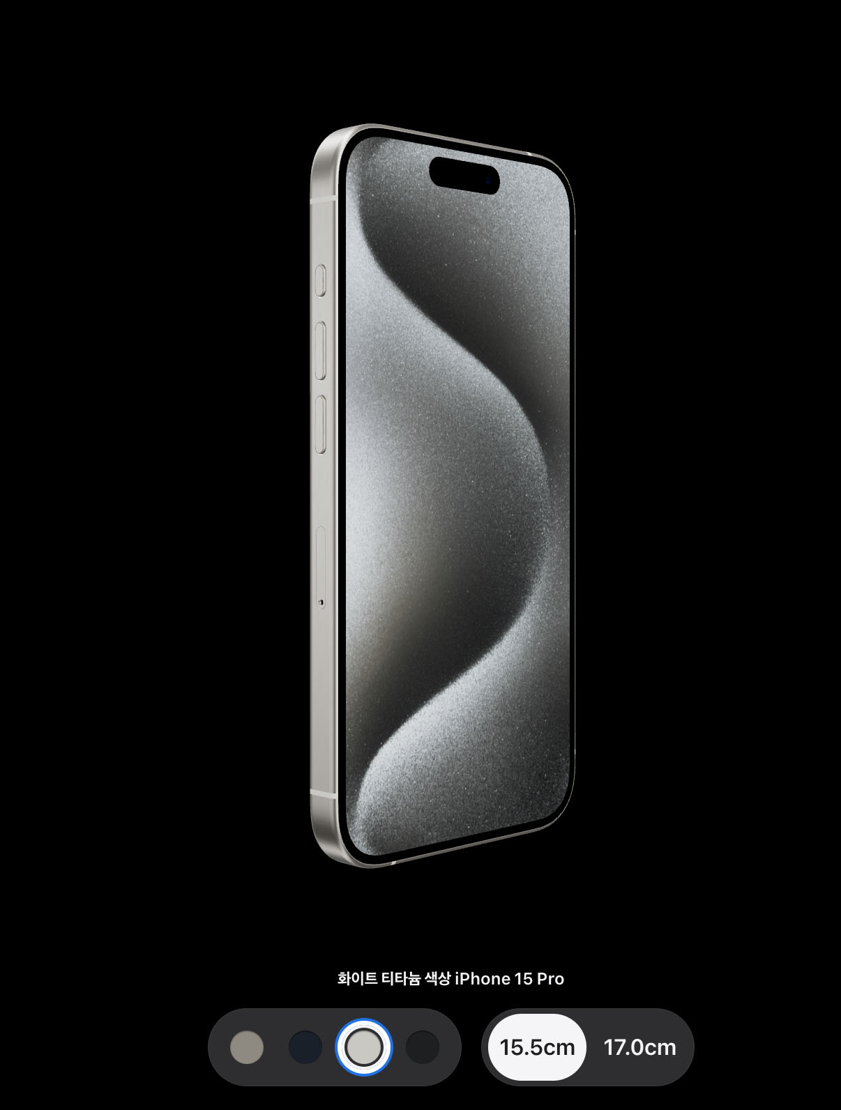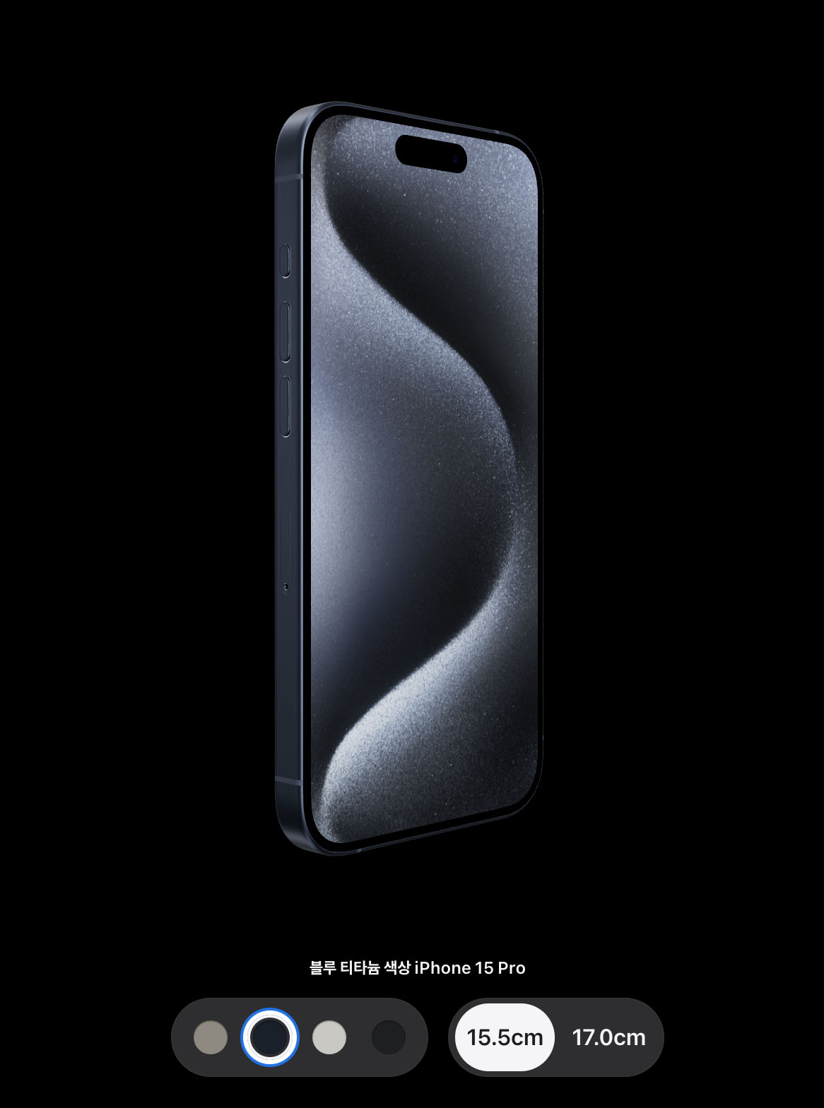 - 아이폰15 프로 및 프로맥스 : 내추럴 티타늄, 블루 티타늄, 화이트 티타늄, 블랙 티타늄