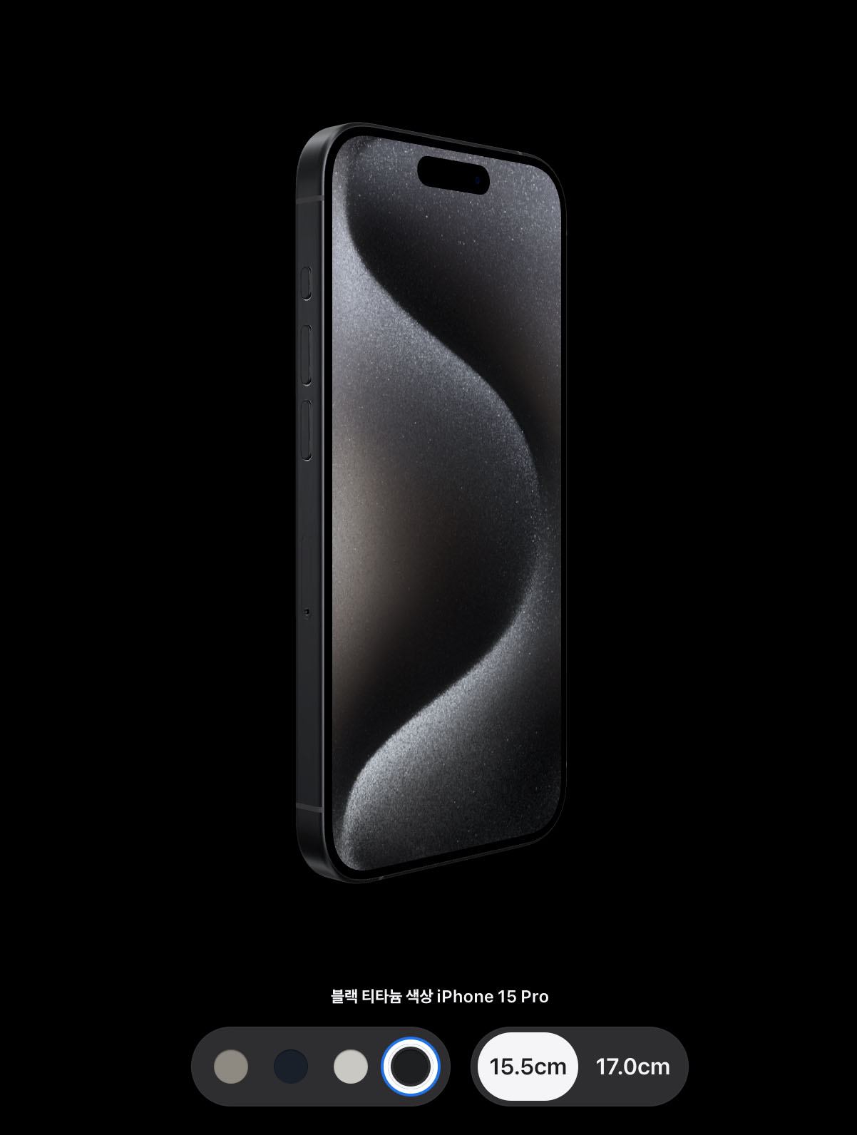 - 아이폰15 프로 및 프로맥스 : 내추럴 티타늄, 블루 티타늄, 화이트 티타늄, 블랙 티타늄