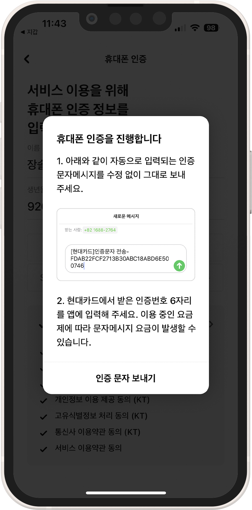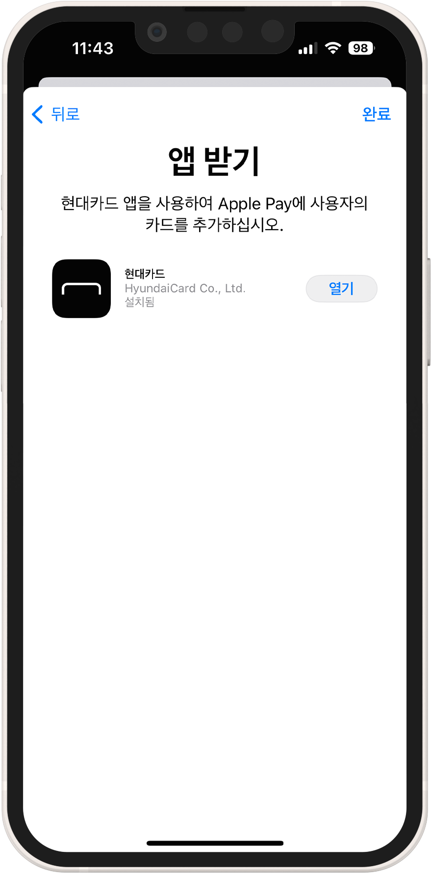 5. 본인 인증 후 애플페이에 현대카드 등록