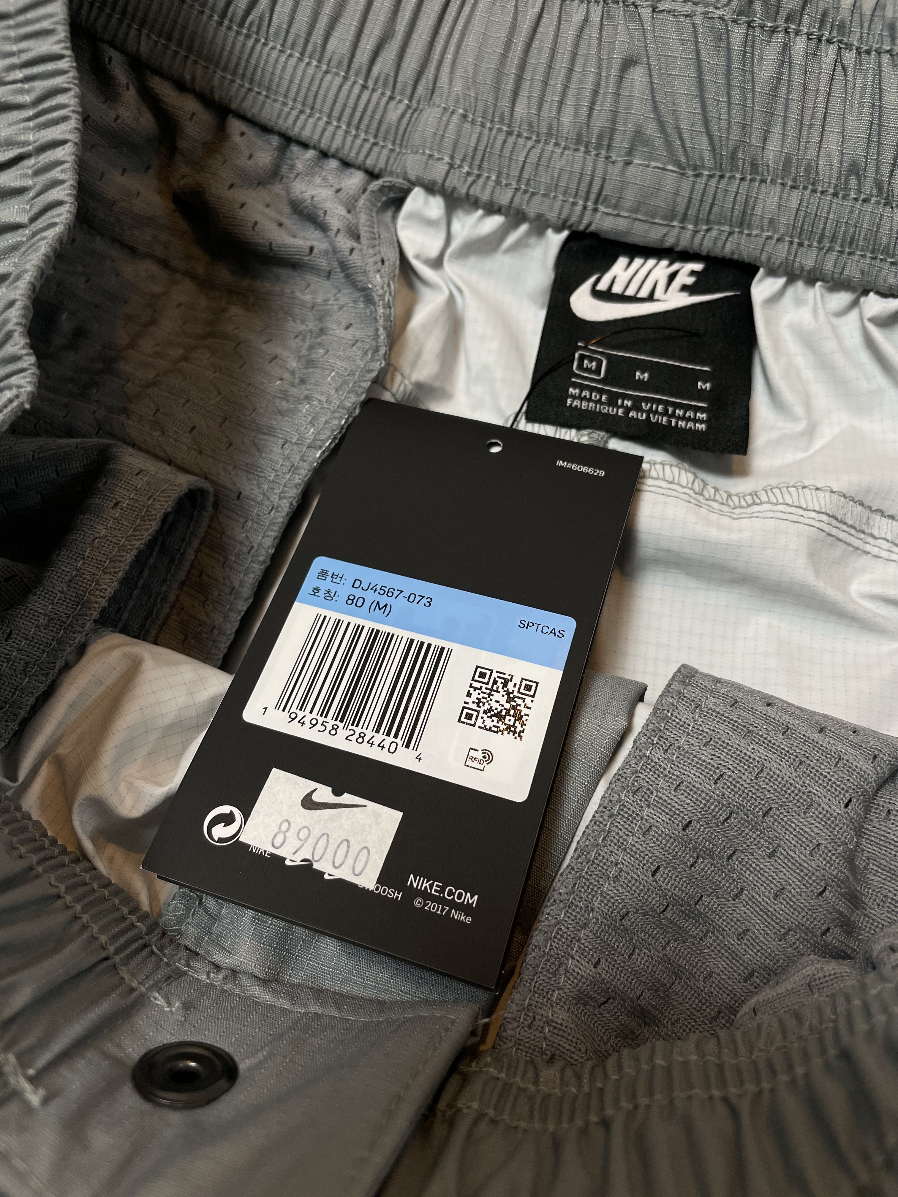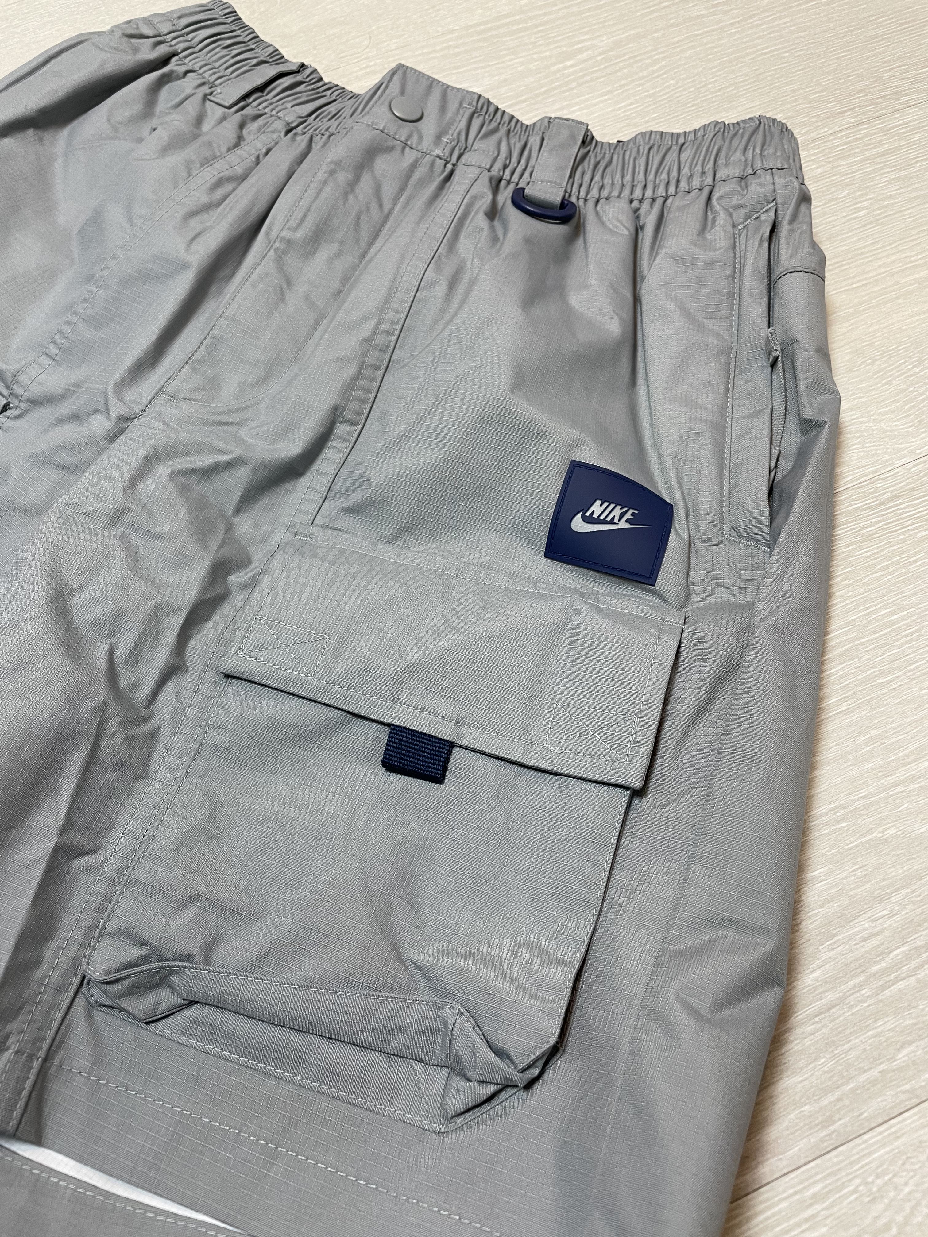 마지막으로 리뷰할 제품은 나이키 스포츠웨어 리펠 SHWR 쇼츠 AS 제품으로 정식 가격은 89,000원입니다. 해당 제품은 파티클 그레이와 미드나잇 네이비 컬러가 포인트로 들어가 있는데요, 이 컬러 이외에는 미드나잇 네이비를 키 컬러로 데저트 더스트 컬러가 포인트로 들어간 제품이 있습니다.