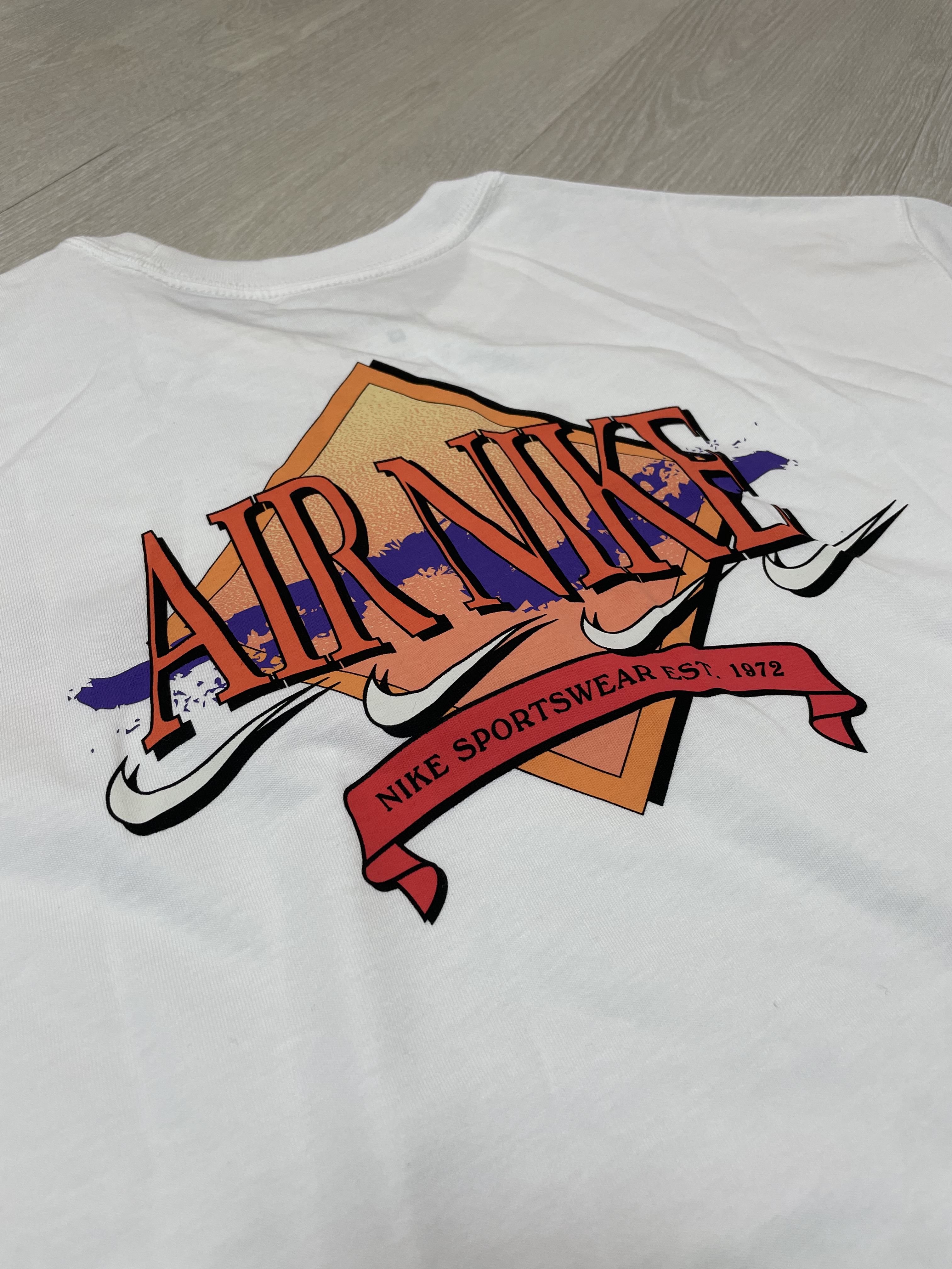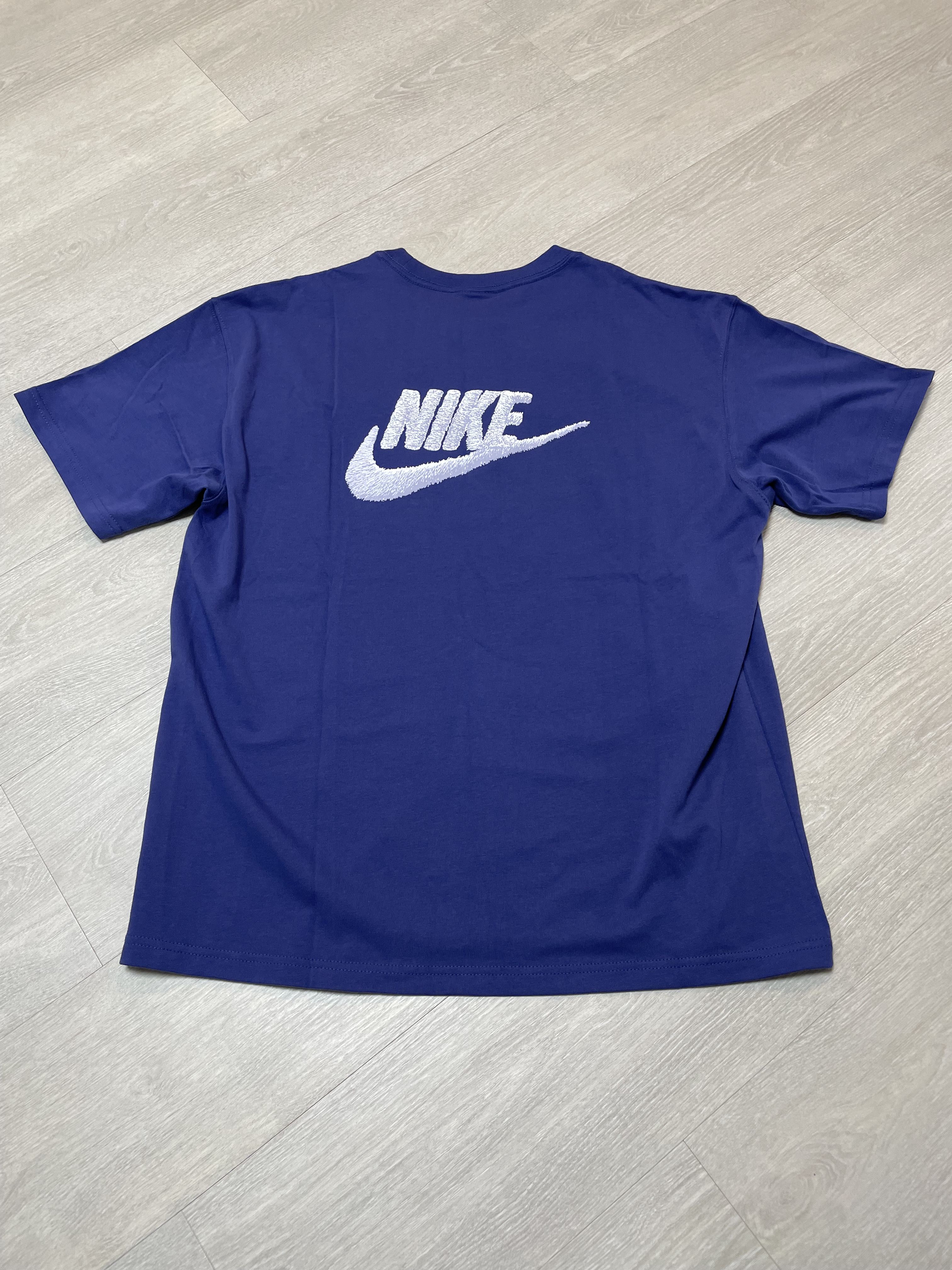 앞면 가슴의 로고와 마찬가지로 뒷면 등 부분에도 커다란 나이키 그래픽 로고가 프린팅 되어 있어요. 프린트 그래픽의 촉감 역시 매우 부드러웠습니다. 가슴과 뒷면의 레트로 스타일의 그래픽 로고로 인해 90년대 느낌의 패션을 연출할 수 있을 것 같아요.