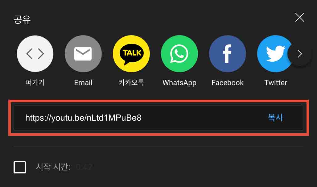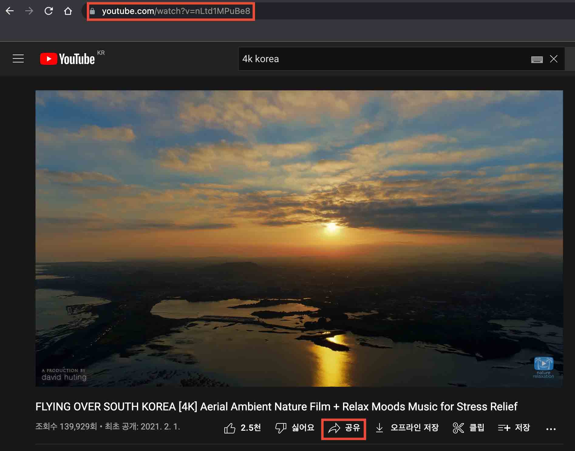 유튜브의 경우 웹브라우저 상단의 주소를 그대로 복사해서 붙여 넣기 해도 되고, 동영상 바로 하단의 공유 버튼을 눌러 링크 복사를 한 뒤 savefrom.net에서 붙여 넣기 해줘도 됩니다.