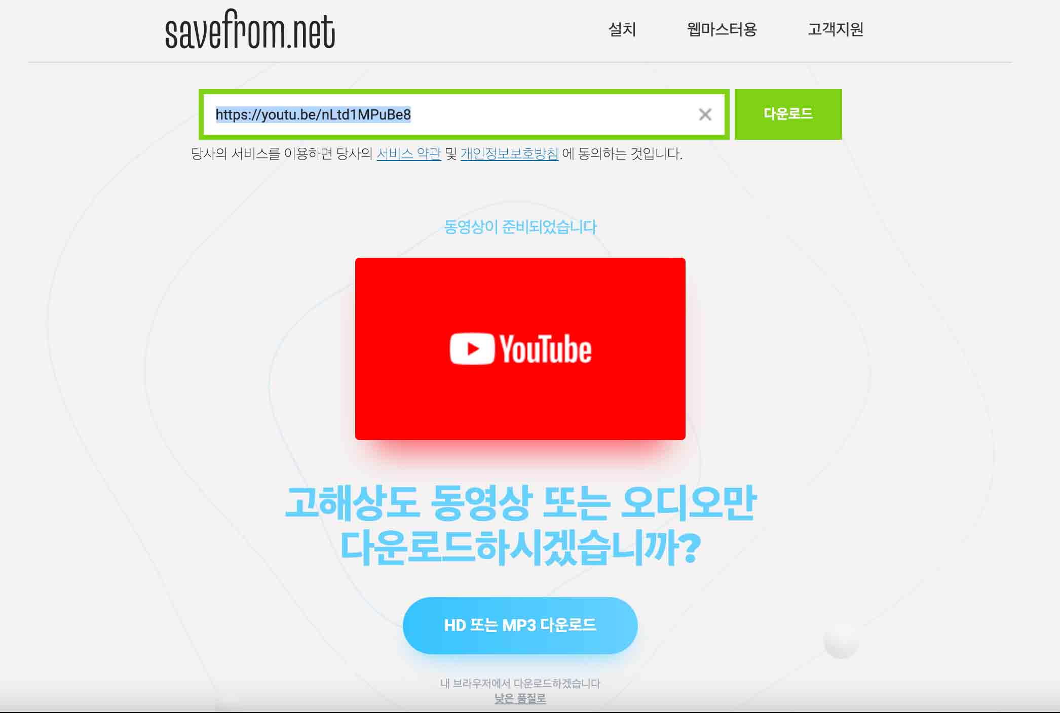 그래서 동영상을 급하게 다운로드 받아야 하는 경우나 개인 컴퓨터가 아닌 경우 간단하게 웹사이트에 접속해서 동영상 링크만 복사, 붙여 넣기 해서 이용하고 있습니다.