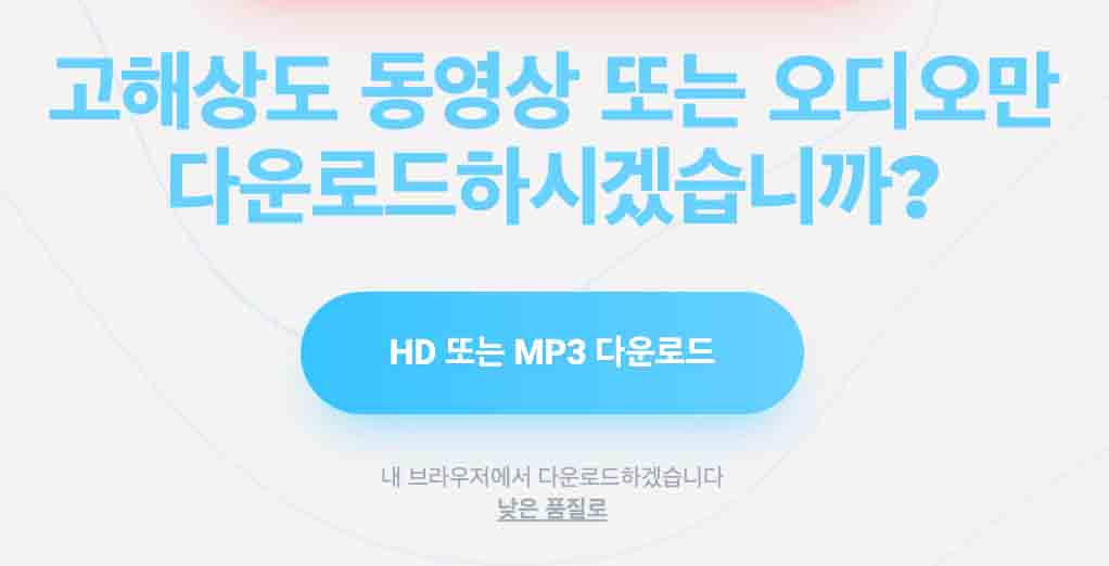 한 번의 클릭으로 YouTube 비디오를 다운로드하는 무료 온라인 서비스! 빠르고 간편하게 vimeo, Facebook 및 Dailymotion 등의 비디오를 다운로드할 수 있는 최고의 YouTube Downloader!