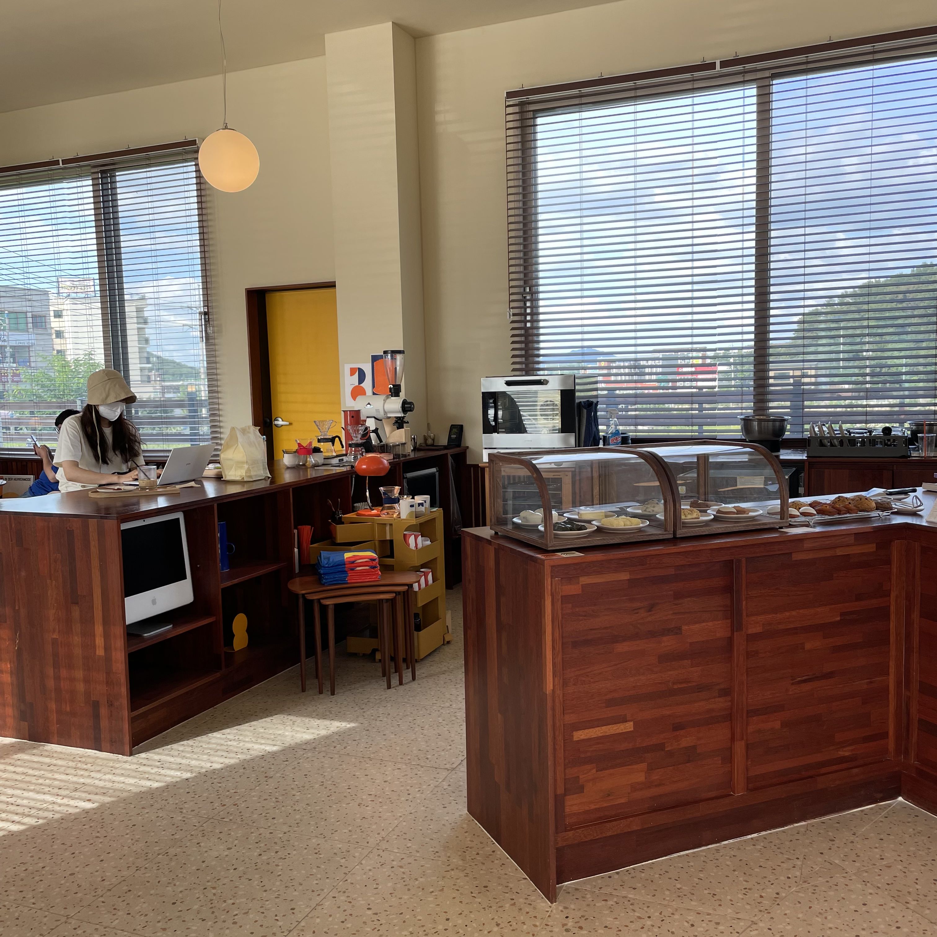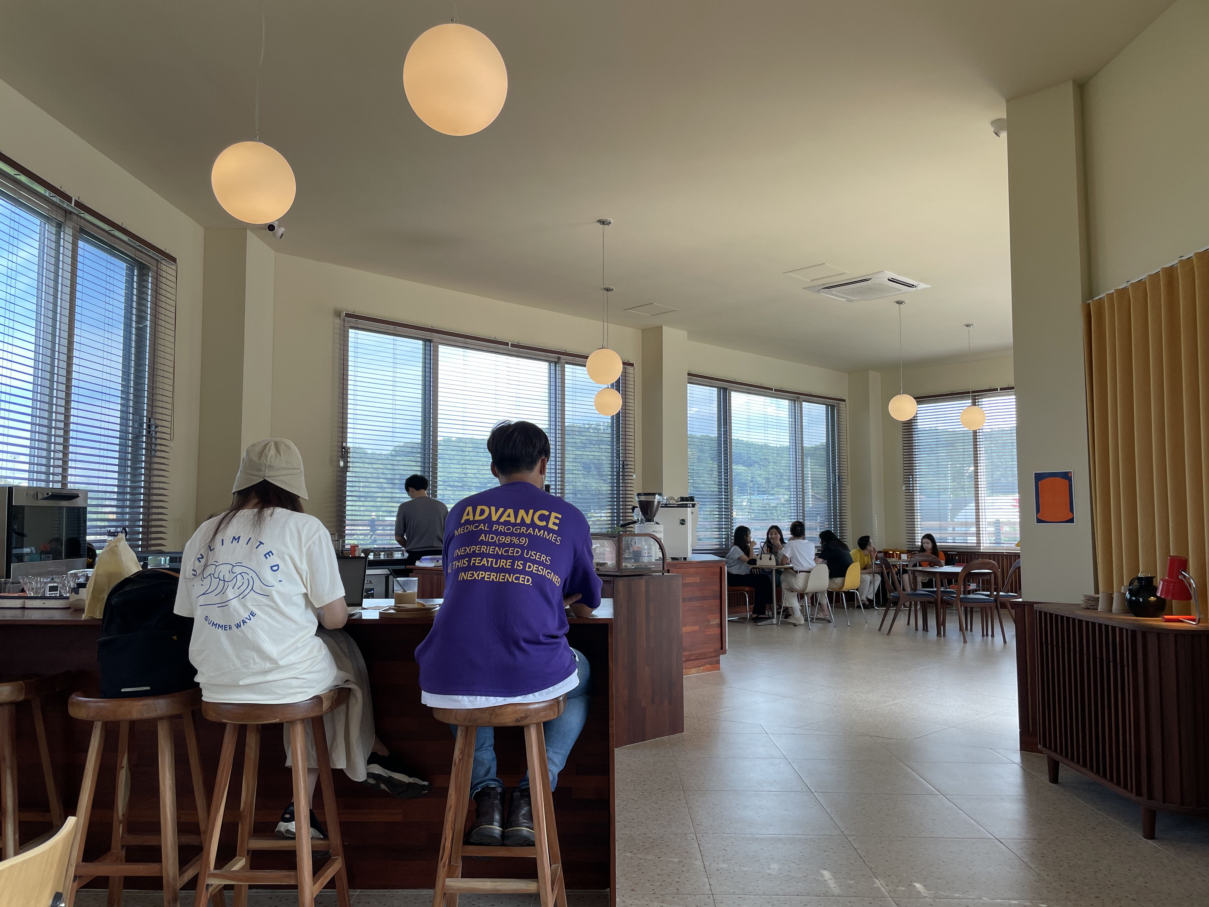 1층 공간은 꽤 넓은 편이었고, 저는 2층도 모두 카페인 줄 알았는데 그건 아니더라고요. 그리고 1층의 층고가 꽤 높고, 통창도 많이 달려 있어서 답답한 느낌이 전혀 없었습니다.