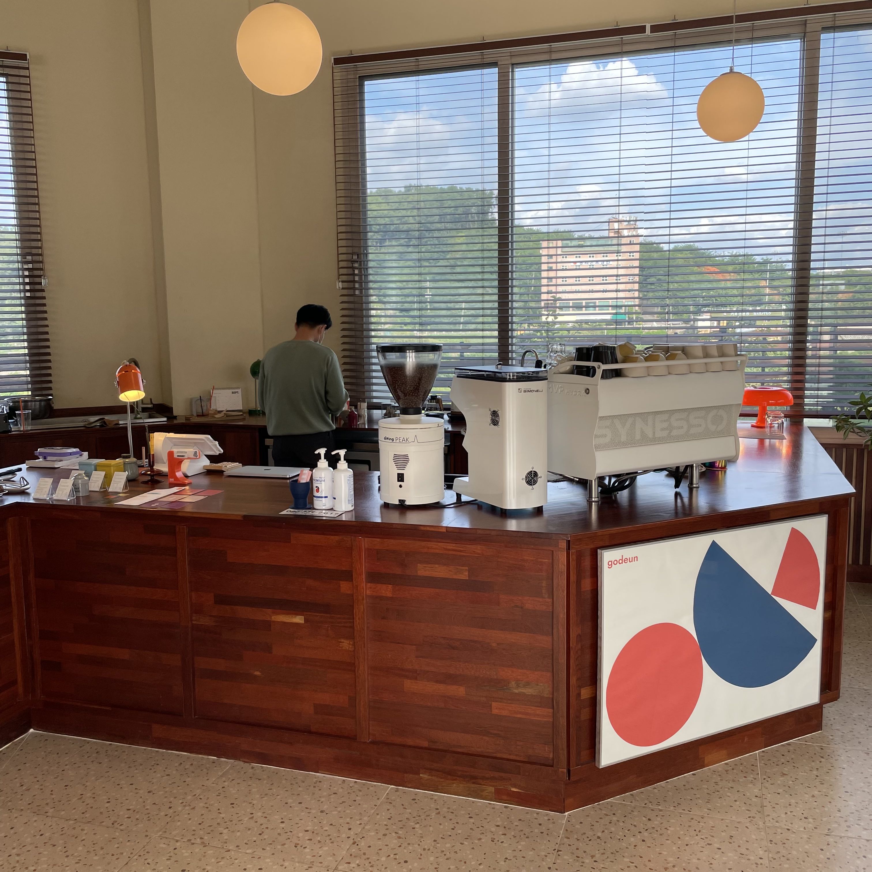 1층 공간은 꽤 넓은 편이었고, 저는 2층도 모두 카페인 줄 알았는데 그건 아니더라고요. 그리고 1층의 층고가 꽤 높고, 통창도 많이 달려 있어서 답답한 느낌이 전혀 없었습니다.
