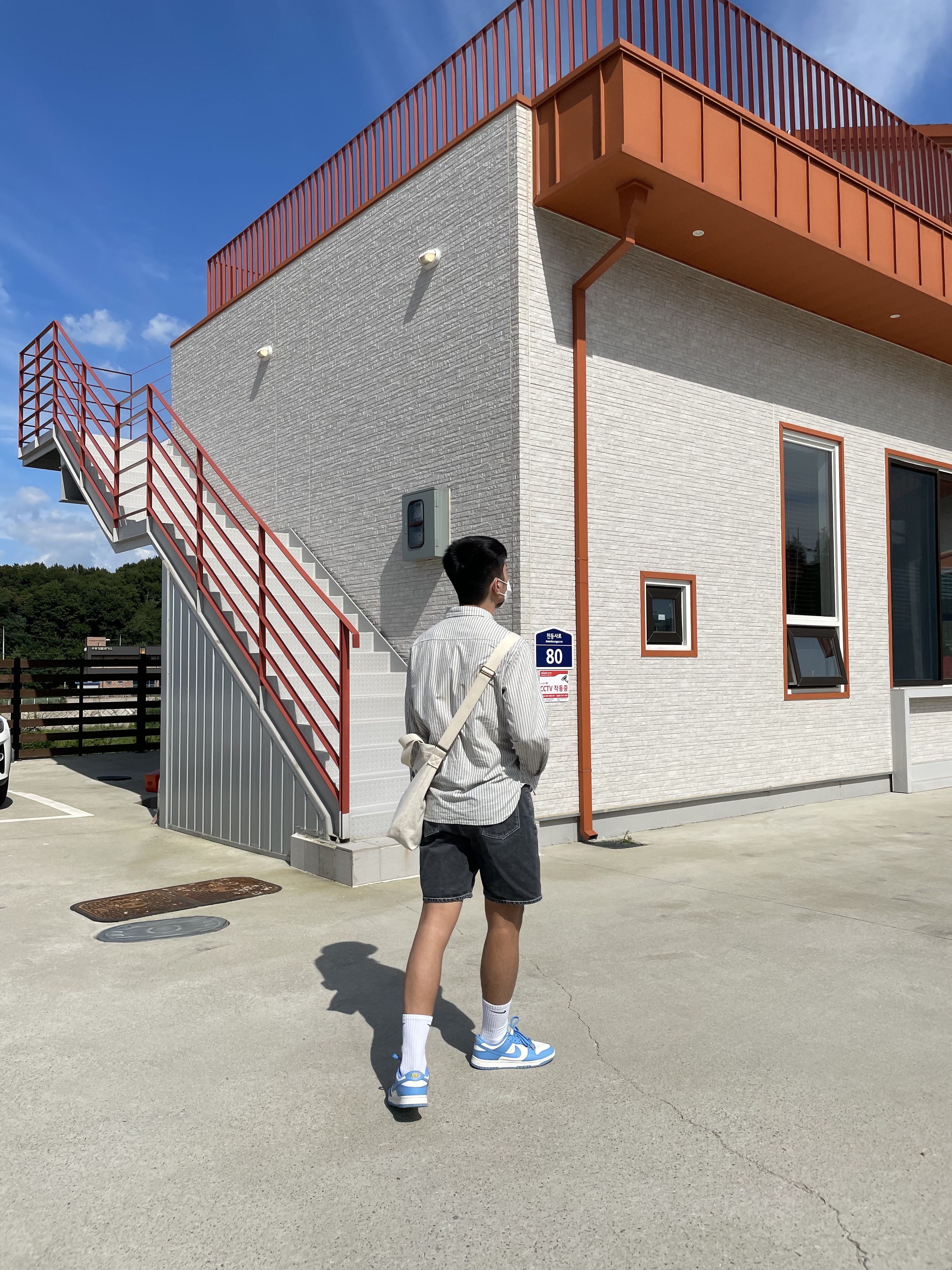 충분히 휴식을 취하고 밖에 나와서 카페를 배경으로 이렇게 사진도 찍어봤어요. 여러분도 강화도 갈 일이 있다면 곧은에 꼭 방문해보세요!