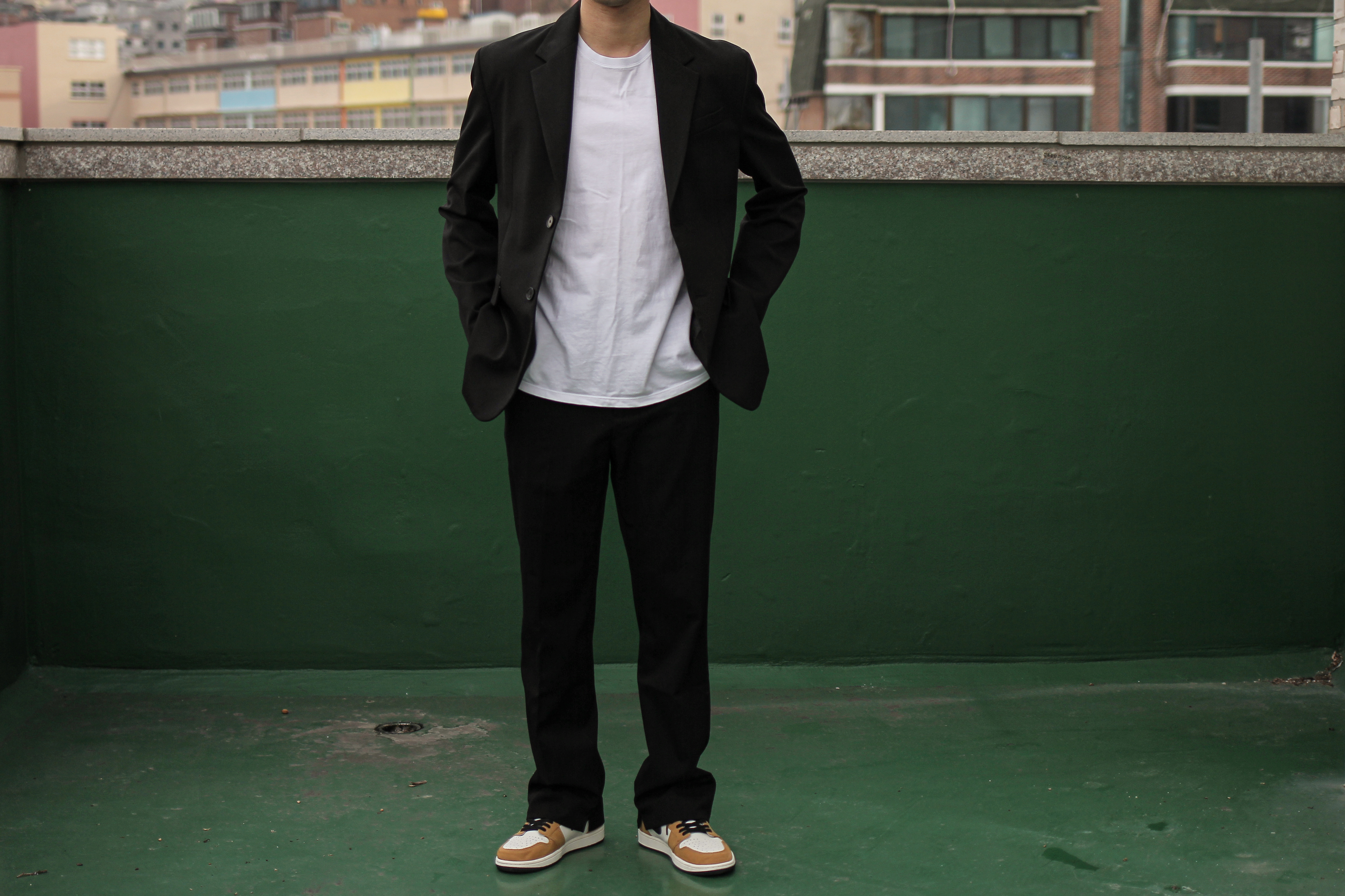 오늘은 나이키 에어 조던1 루키오브더이어 제품으로 깔끔한 슈트 스타일링을 해볼 건데요, 슈트 제품은 모두 드로우핏에서 구매했어요.