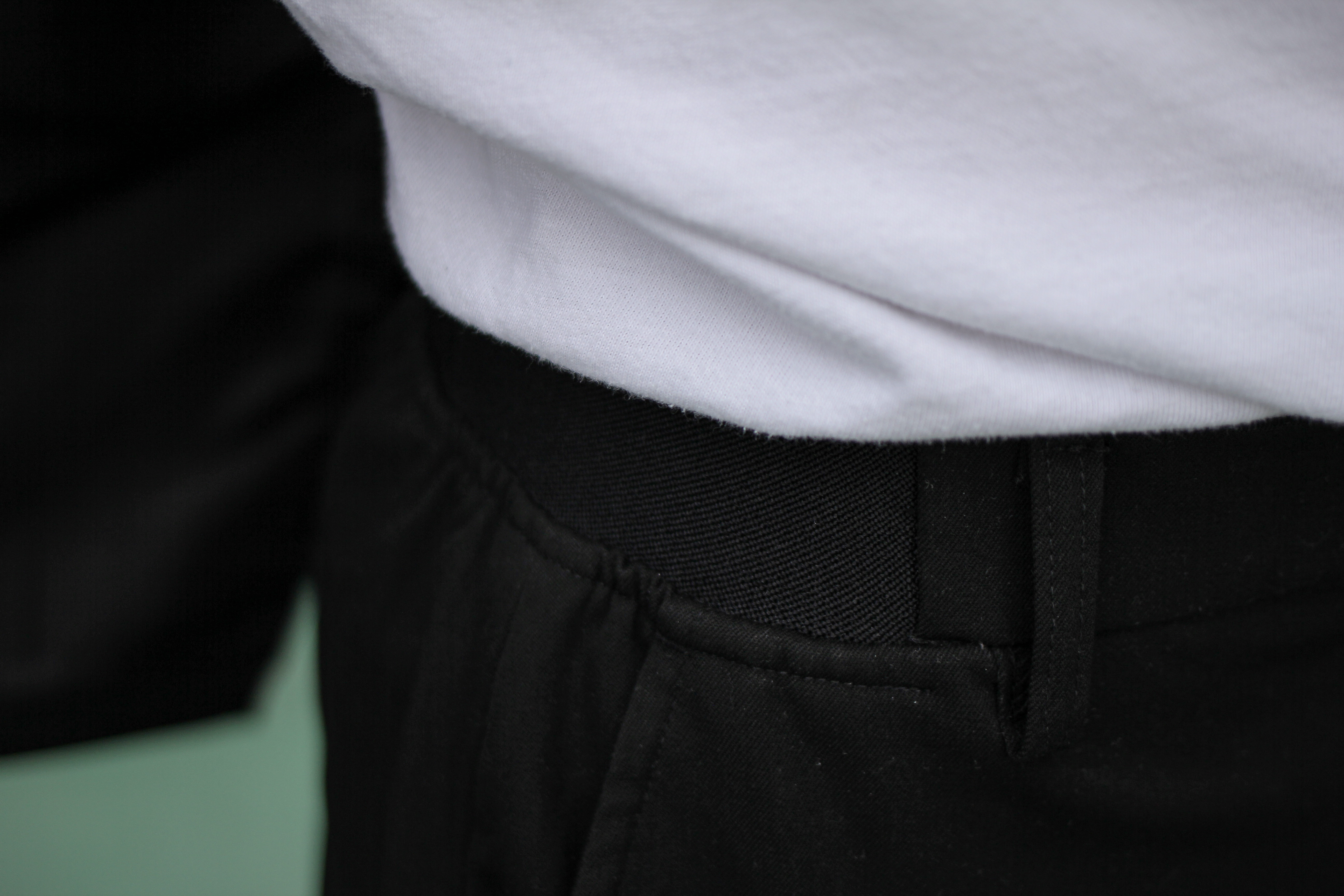 다시 모더니티 와이드 슬릿 슬랙스로 돌아가서 허리 부분을 살펴볼게요. 해당 제품은 허리 부분에 고탄력 이중직 밴드가 있어서 착용 시 불편함 없는 안착감을 느낄 수 있어요.