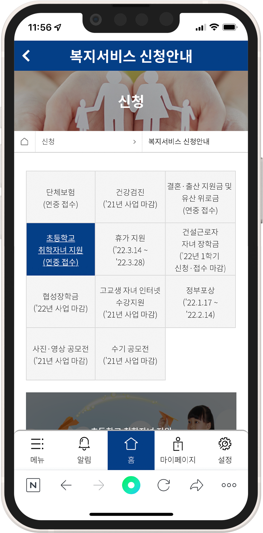 ④ 초등학교 취학자녀 지원 신청 바로가기