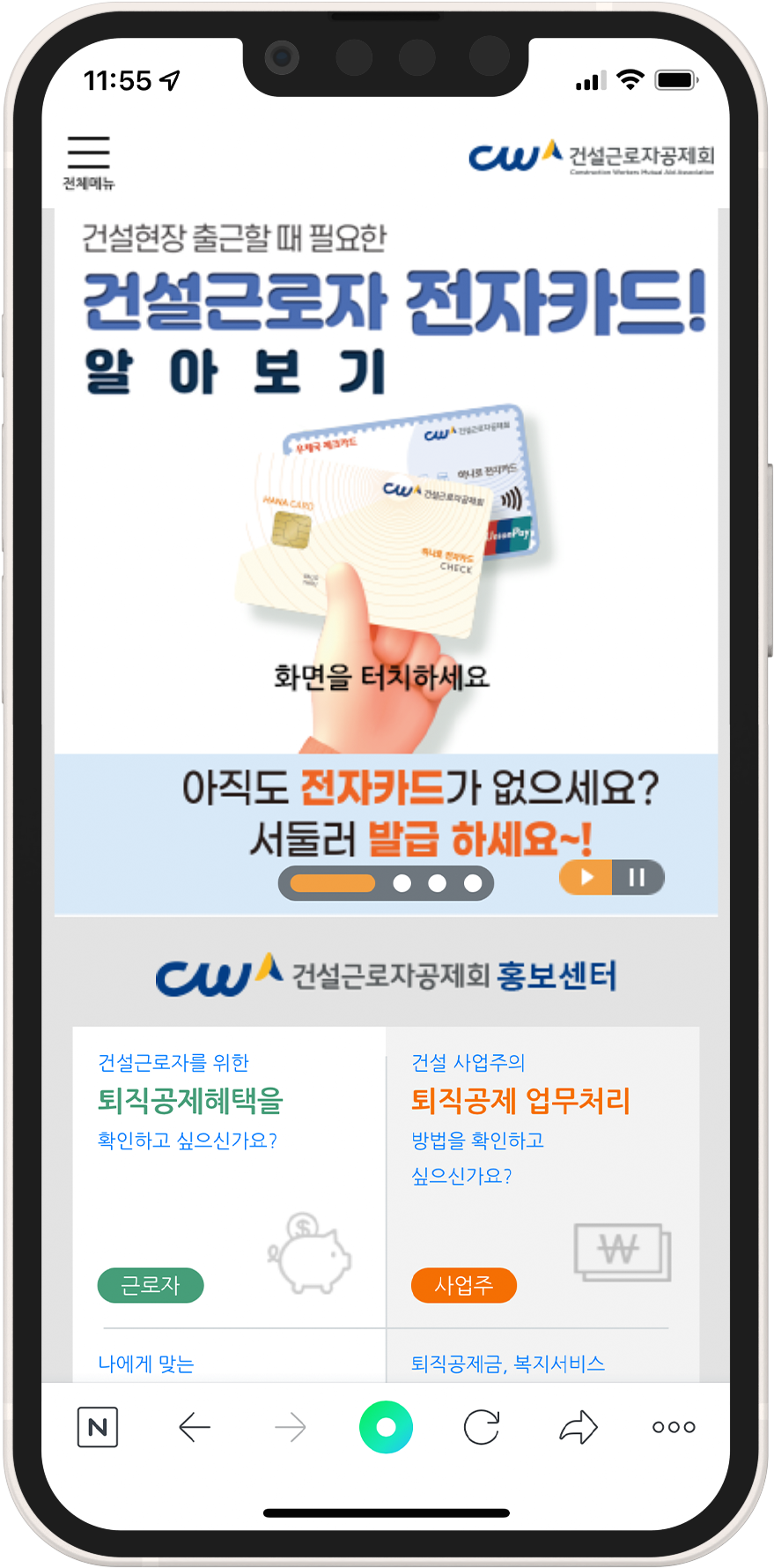 ① 건설근로자공제회 홈페이지 들어가기