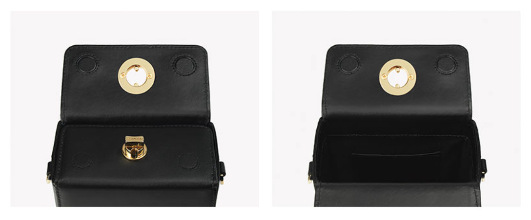 이런 식의 세로 연출이나 가로인 상태에서는 핸드백으로도 연출할 수 있죠. 검정 색상의 천연 소가죽과 금으로 된 클립의 조화가 상당히 고급스럽게 느껴집니다.