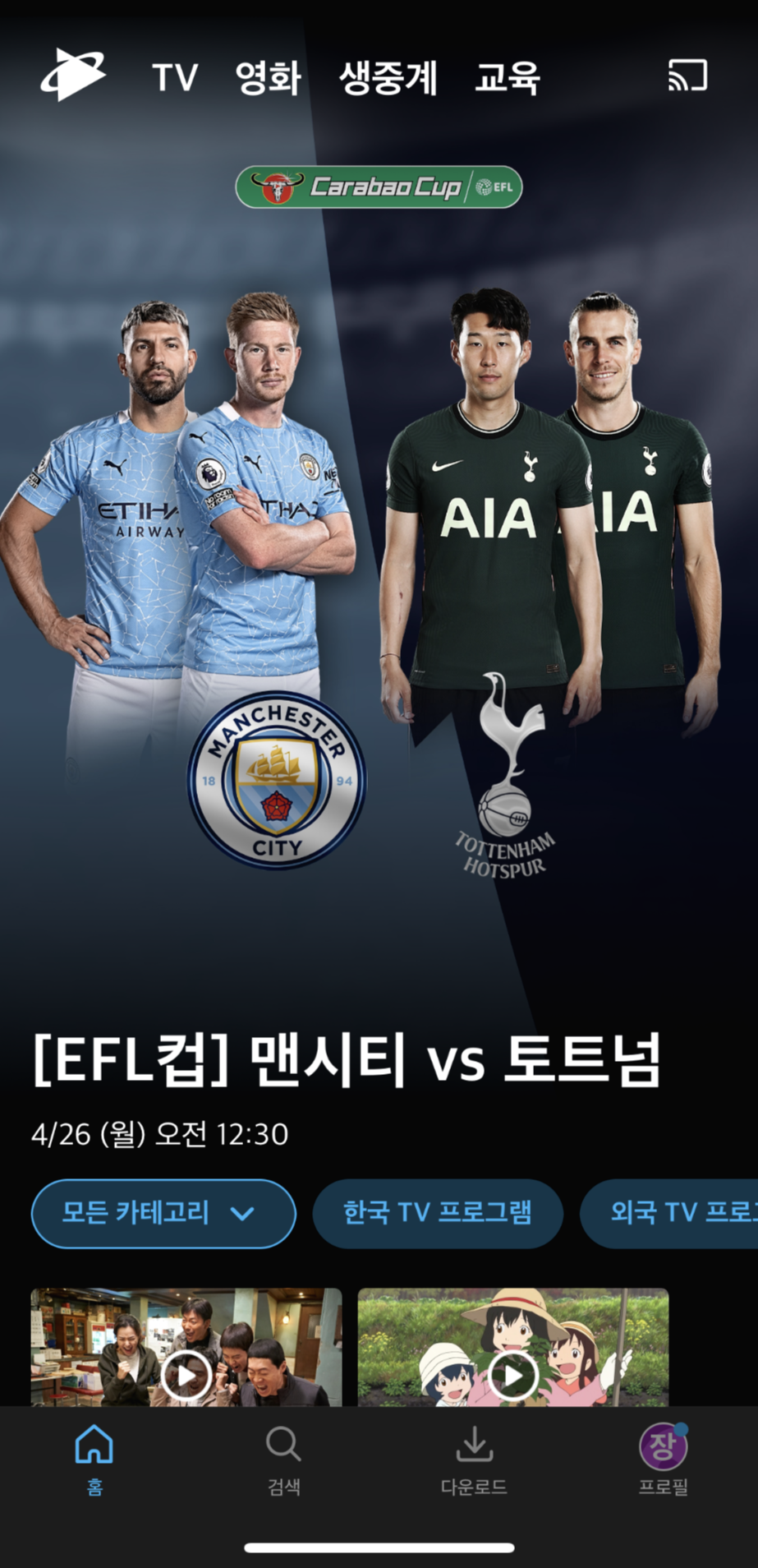 프리미어리그 토트넘 핫스퍼 손흥민 선수의 경기 역시 마찬가지고요.