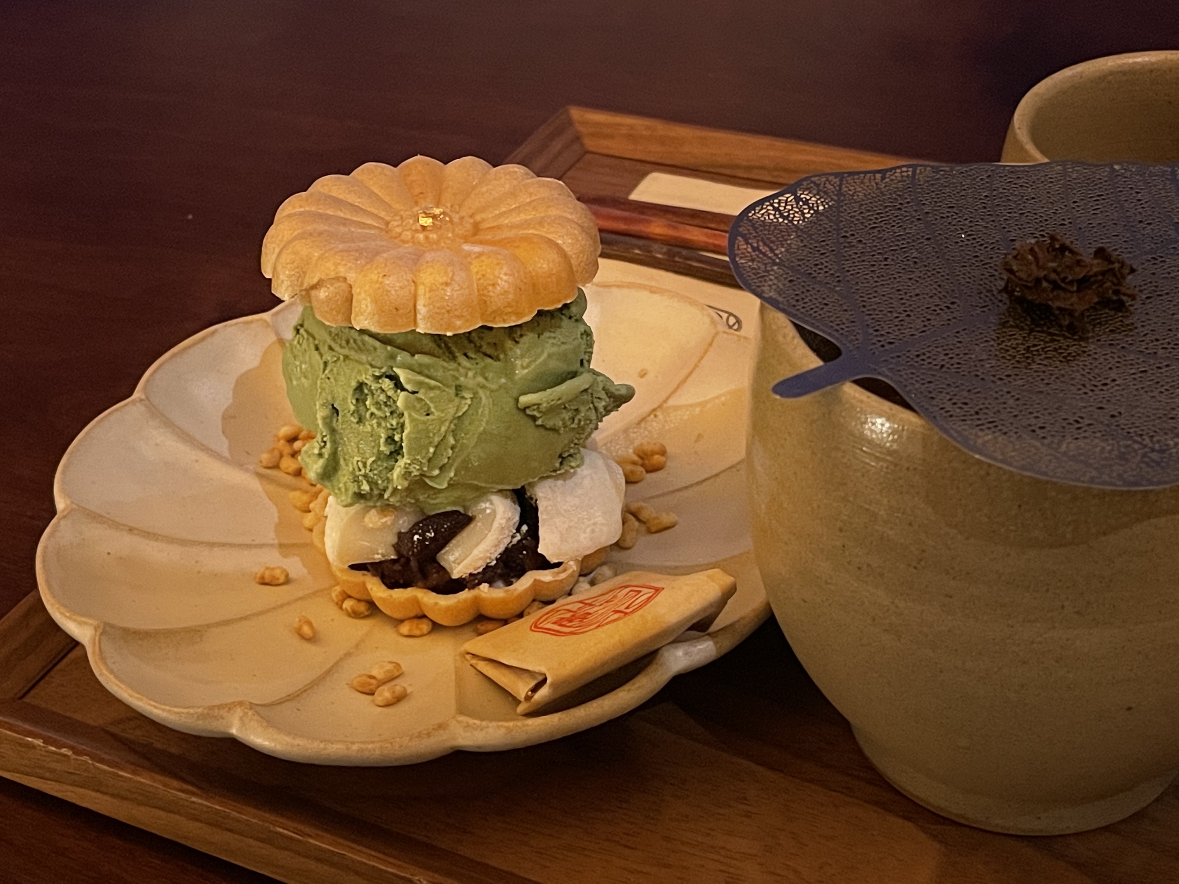 원래 모나카가 찹쌀가루로 만든 과자 사이에 팥을 넣어서 먹는 일본식 과자인데 말차 아이스크림까지 넣으니까 그 조화가 너무 좋았어요.
