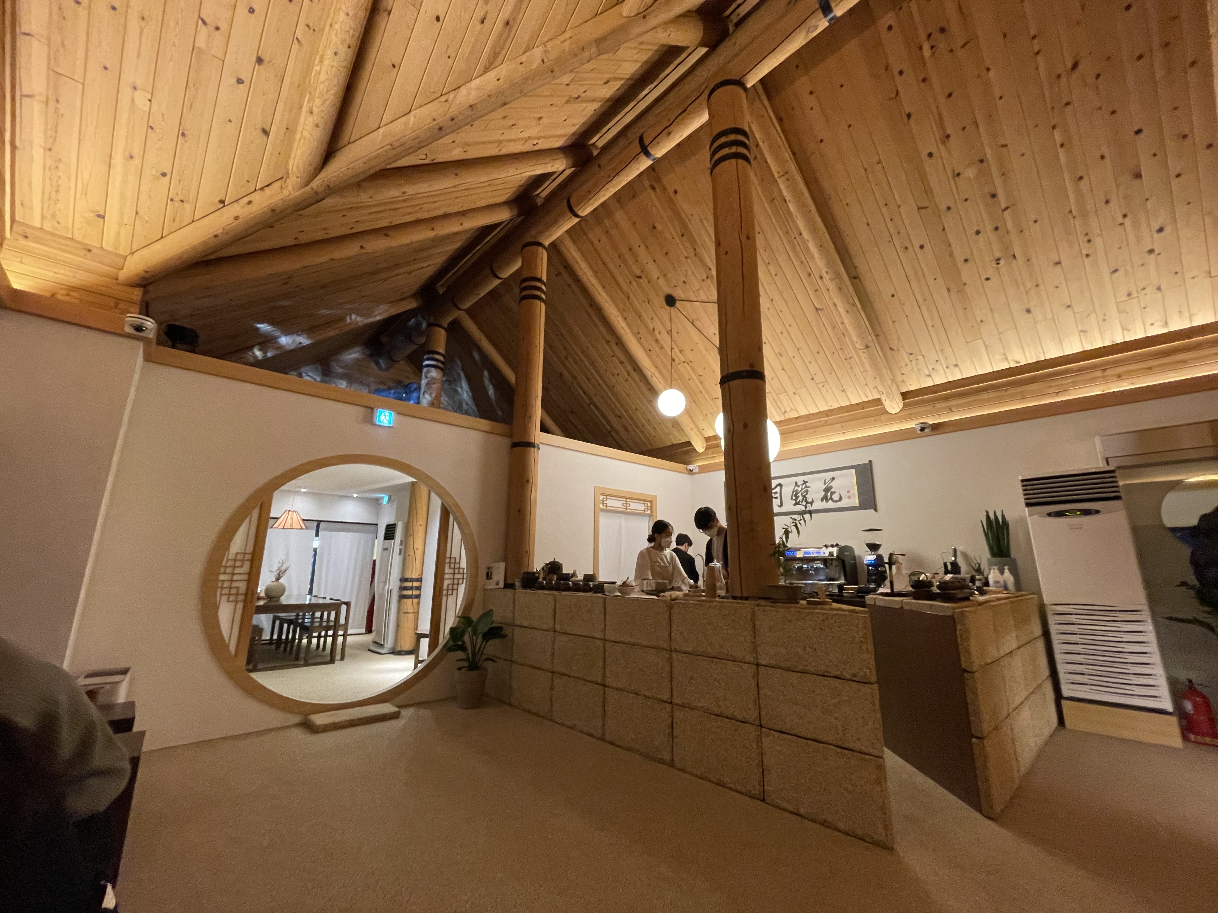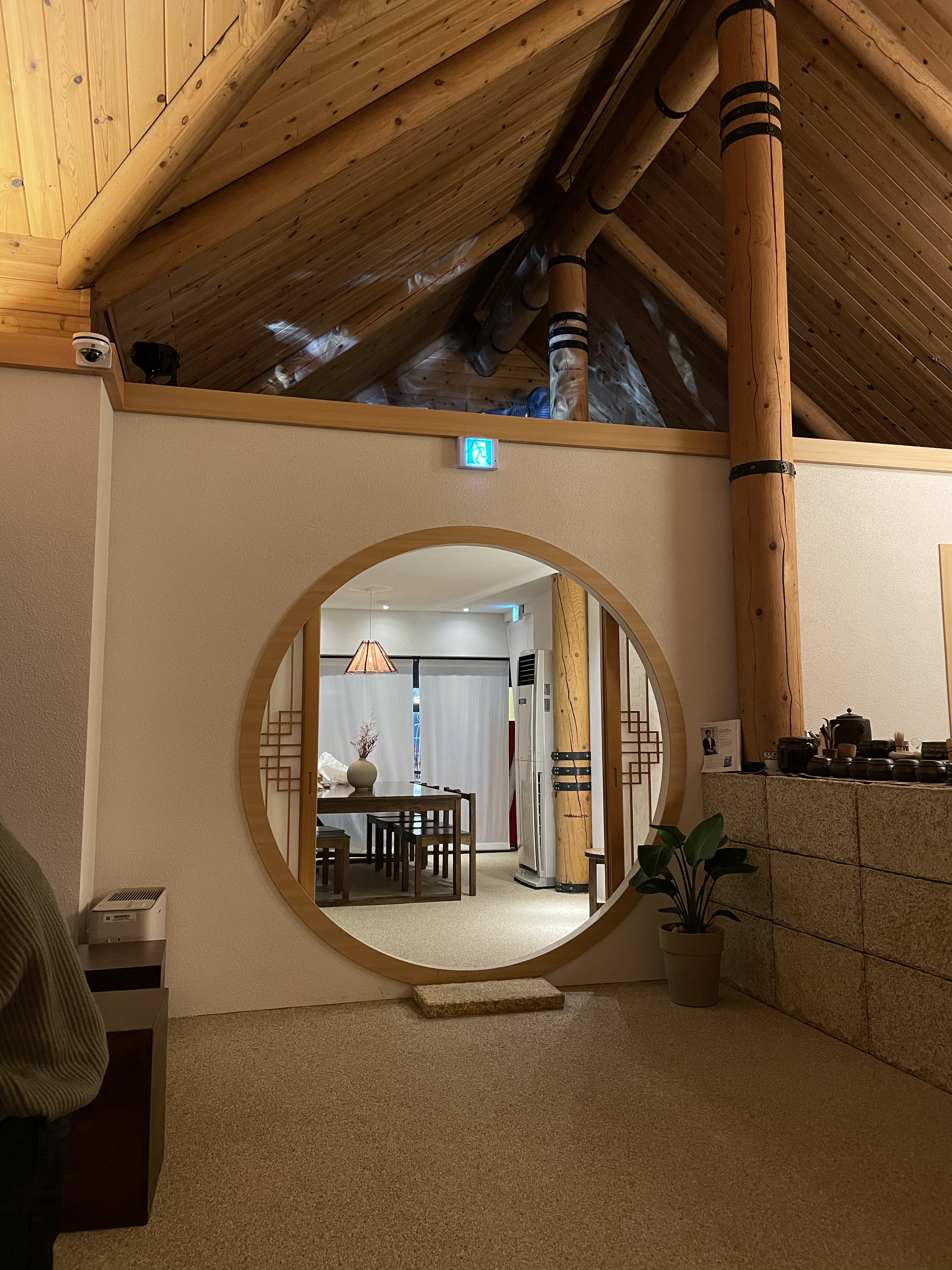 한옥 스타일의 동그란 문을 배경으로 사진 찍는 게 국롤인데, 내부에 손님이 계셔서 저희는 못 찍었네요..