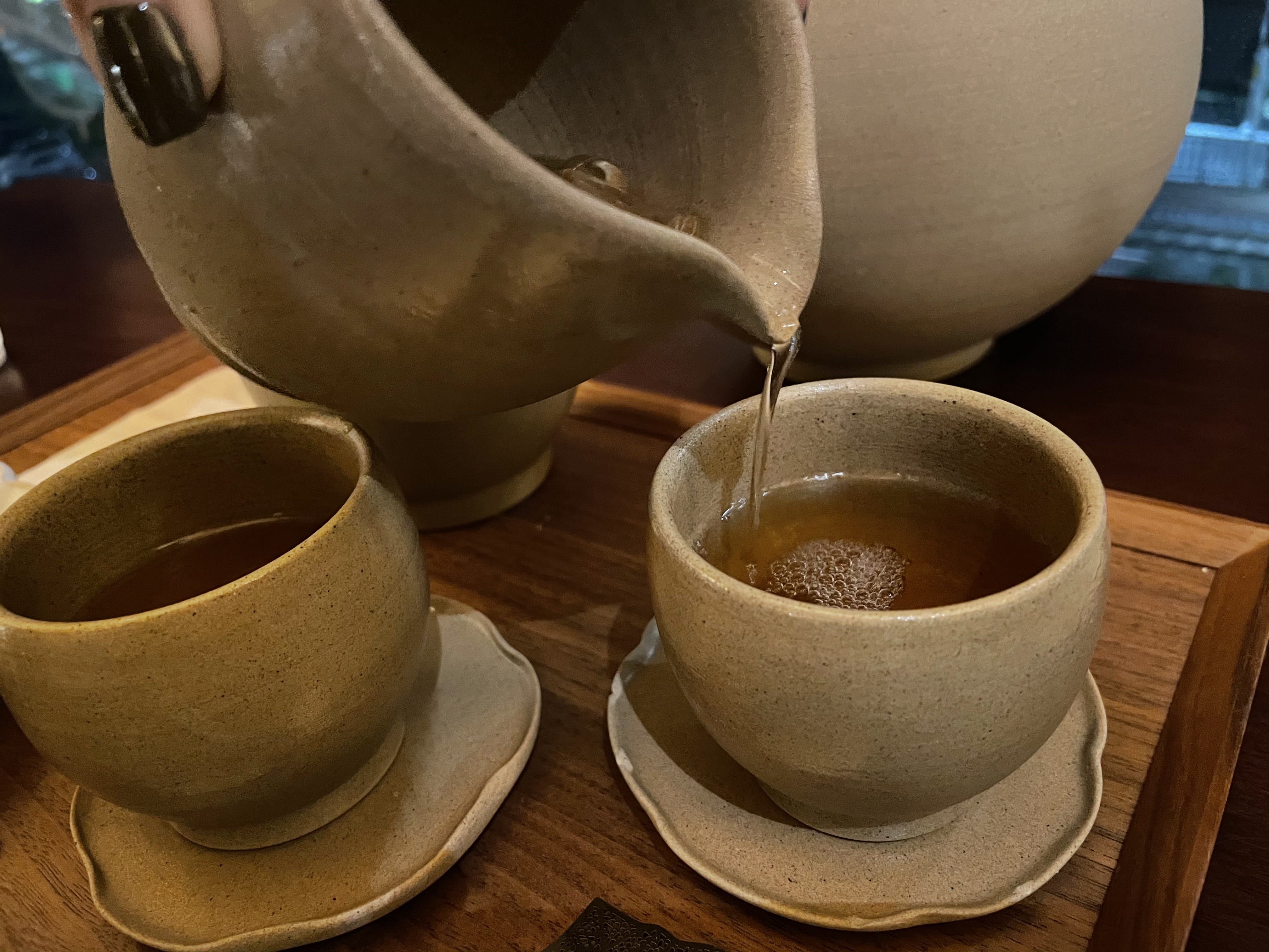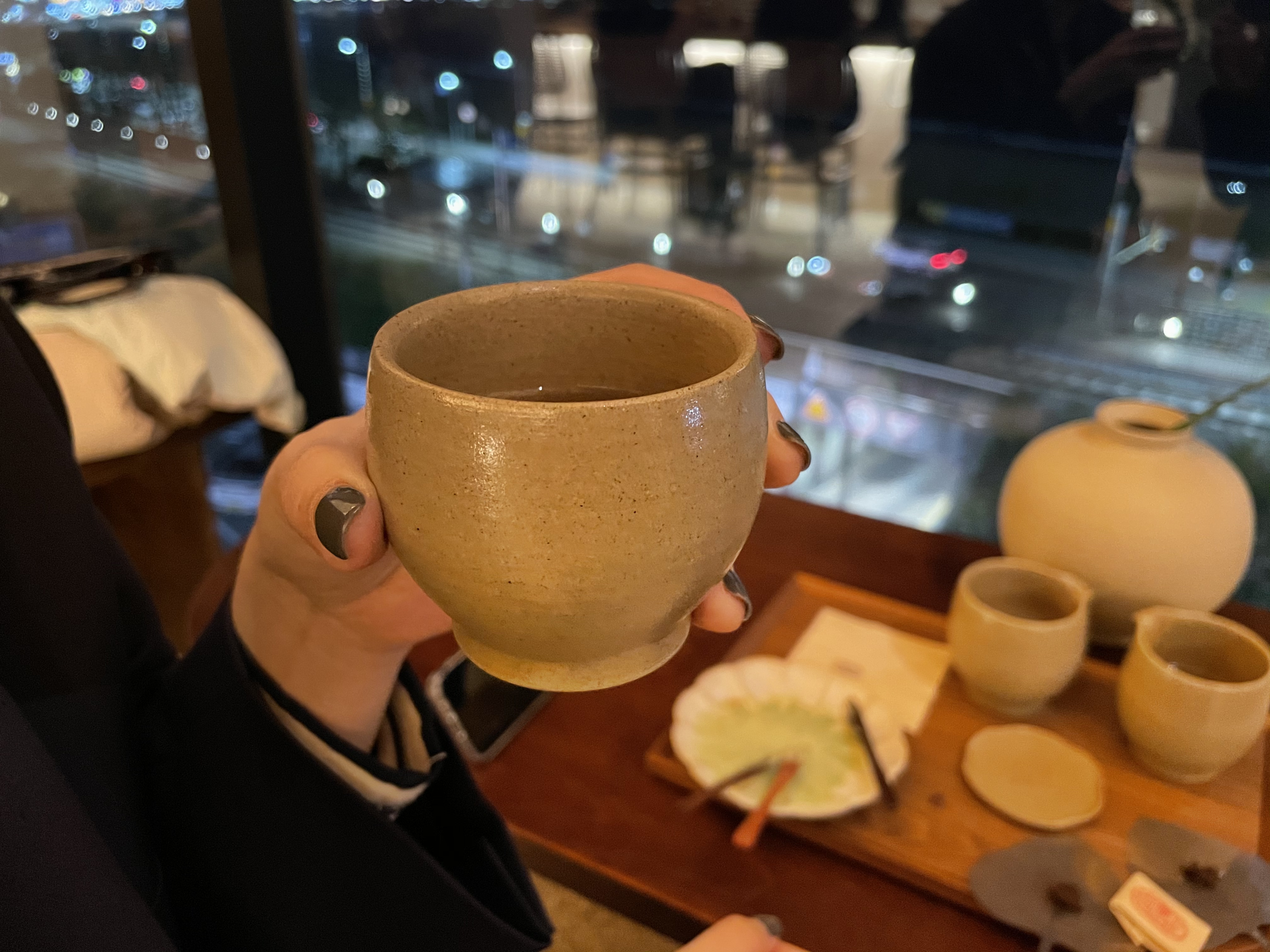 처음에 큰 잔 위에 올려진 잎사귀의 용도를 몰라서 작은 잔 위에 올려놓고 물을 부어서 우려먹는 건가? 고민했었는데, 종업원한테 물어보니 그냥 데코용이라고 하더라고요ㅋㅋ 너무 머쓱했어요.