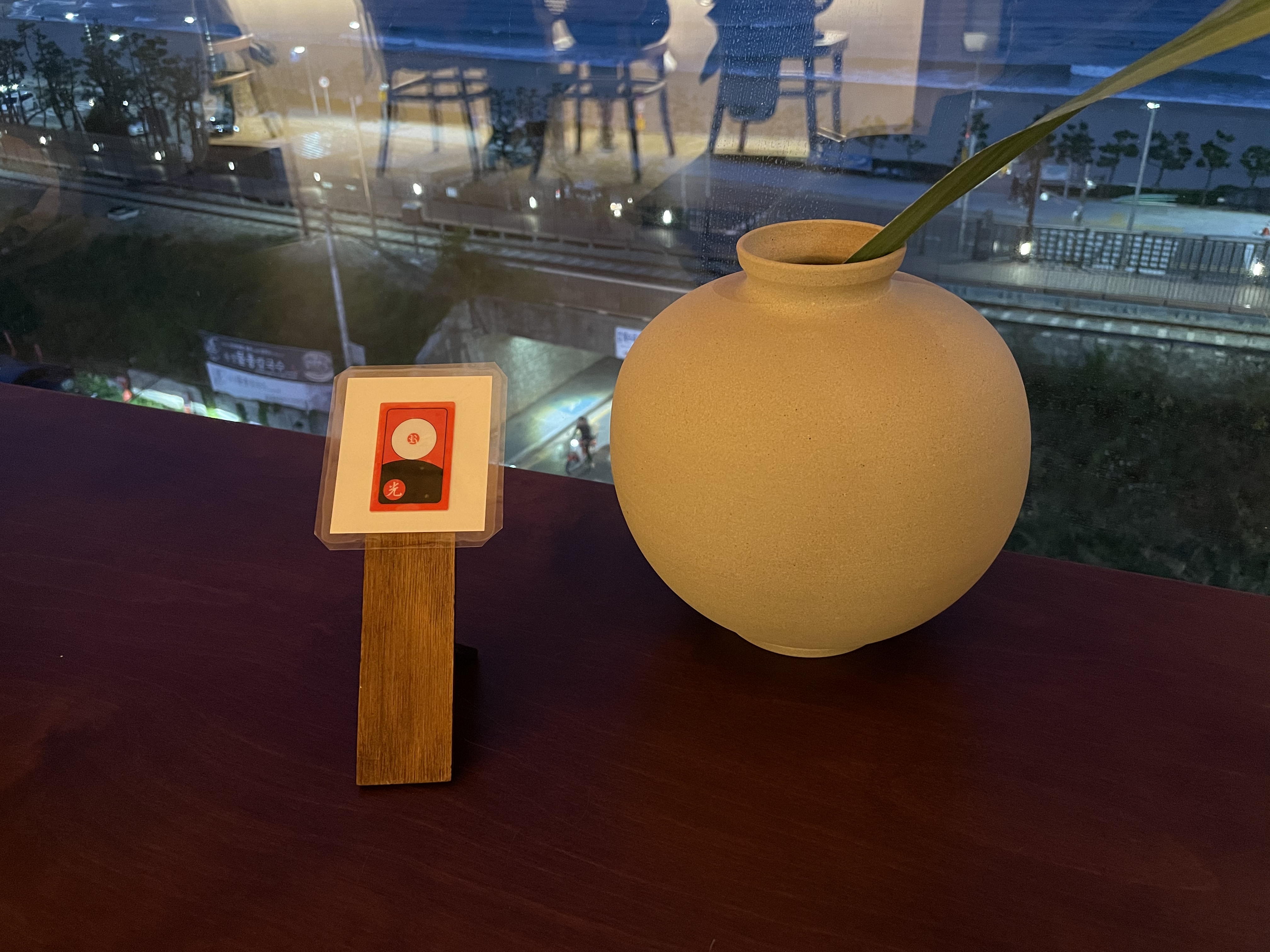 그리고 재밌었던 부분이 주문을 하면 진동벨을 주는 다른 카페와는 달리 이렇게 화투 패, '8월 광'을 줘요ㅋㅋ