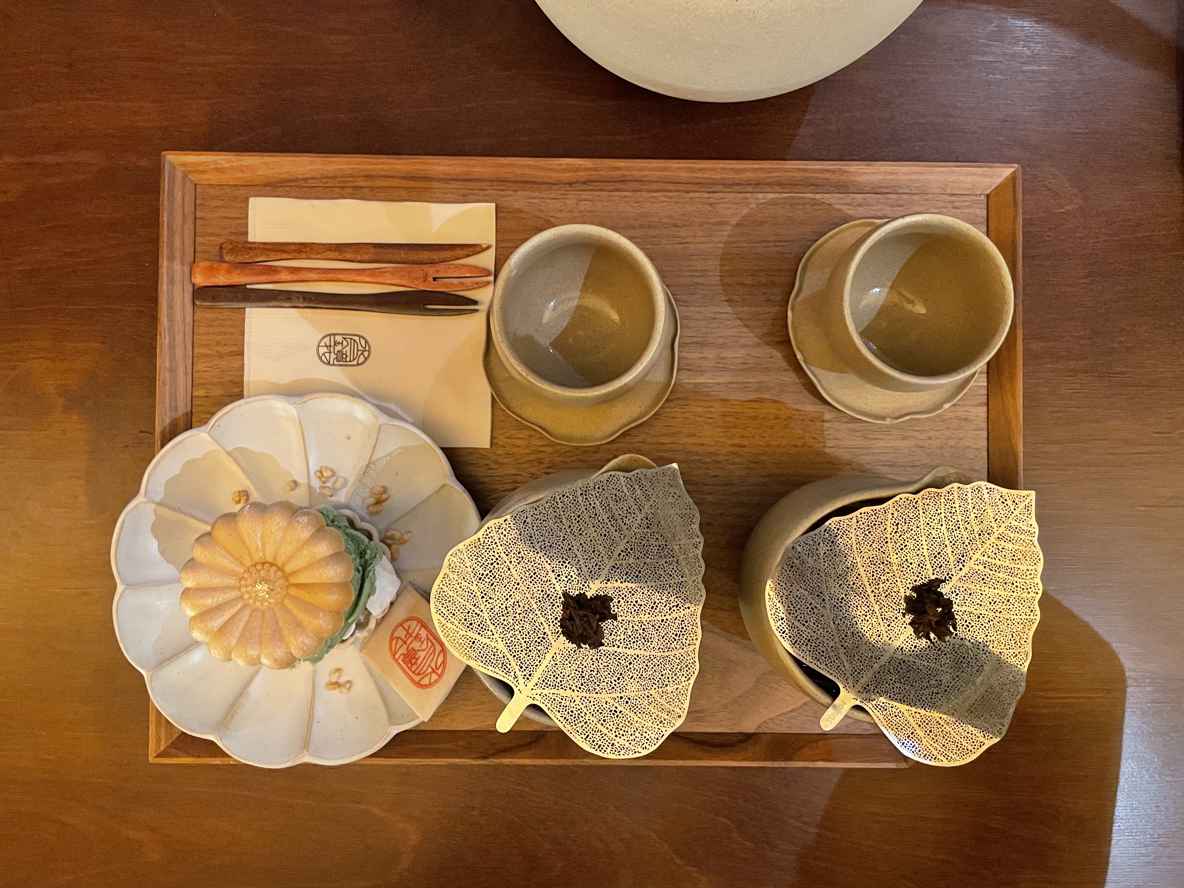 처음에 큰 잔 위에 올려진 잎사귀의 용도를 몰라서 작은 잔 위에 올려놓고 물을 부어서 우려먹는 건가? 고민했었는데, 종업원한테 물어보니 그냥 데코용이라고 하더라고요ㅋㅋ 너무 머쓱했어요.