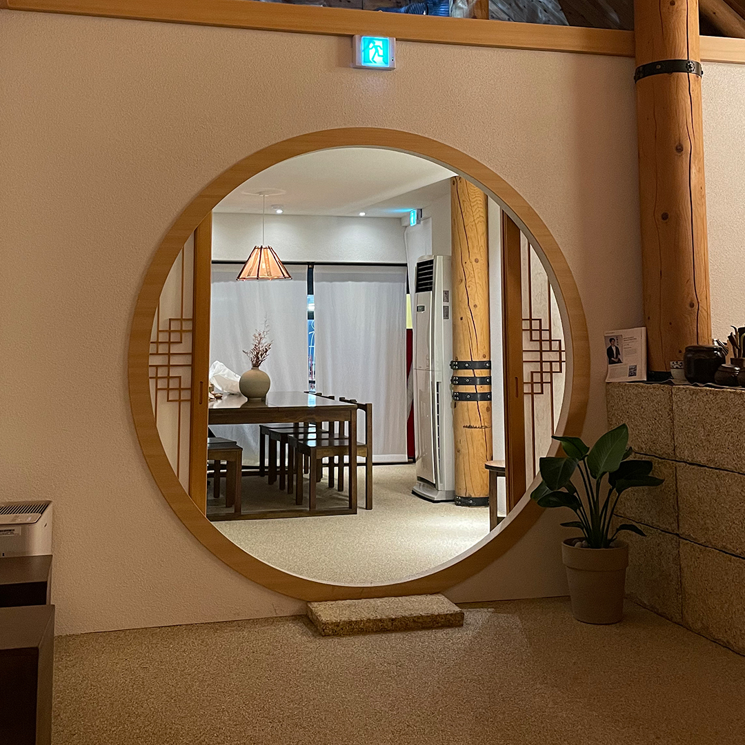 한옥 스타일의 동그란 문을 배경으로 사진 찍는 게 국롤인데, 내부에 손님이 계셔서 저희는 못 찍었네요..
