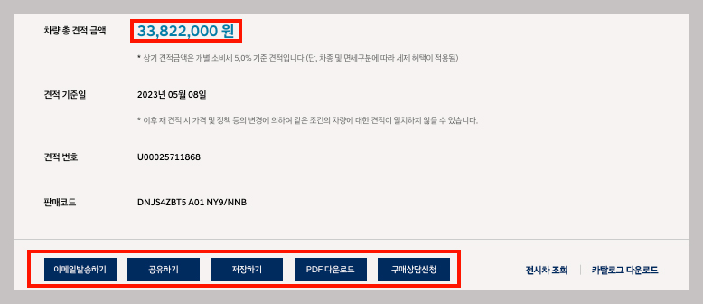 견적이 모두 완료되면 최종 가격을 확인한 후 구매 상담 신청을 하면 되는데요, 모의견적 마지막 페이지 가장 하단에 구매 상담 신청 버튼이 있으니 이걸 클릭하시면 됩니다.