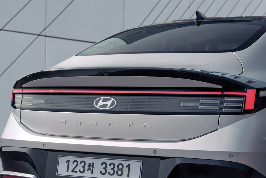 대체로 낮은 높이의 후드에서 루프 라인으로 이어지는 쿠페형 디자인은 기존의 쏘나타 모델과는 다른 스포티한 이미지를 보여주는데요, 특히 현대자동차의 시그니처 라이트 디자인인 심리스 호라이즌 램프는 2024 쏘나타 디 엣지의 과감한 스타일을 대변해 줍니다.
